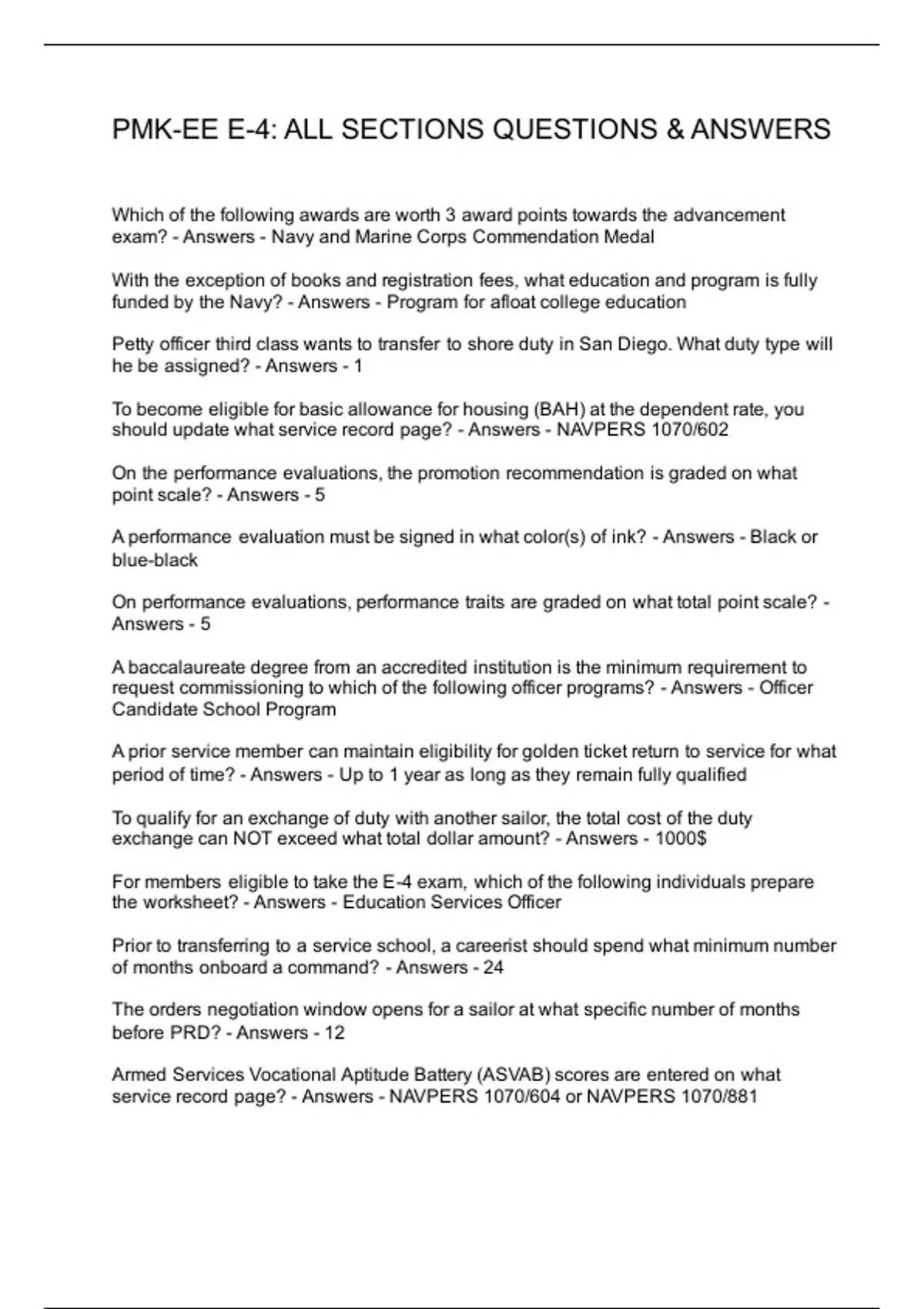 PMK-EE E-4: ALL SECTIONS QUESTIONS & ANSWERS