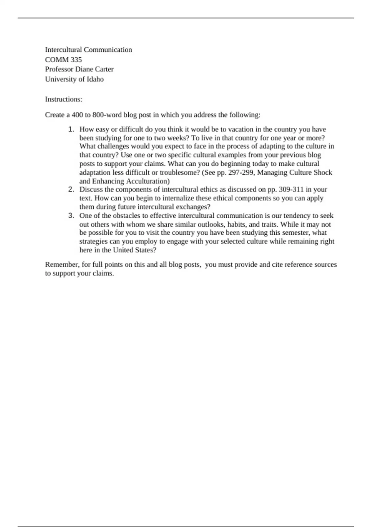 Remember, for full points on this and all blog posts, you must provide and cite reference sources