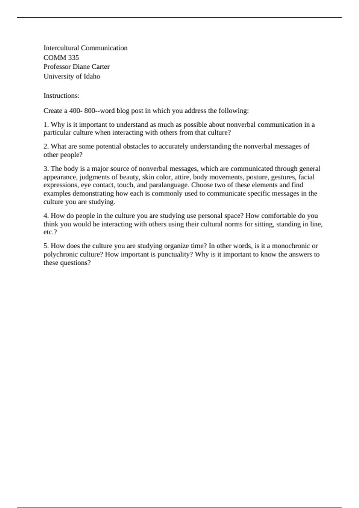 4. How do people in the culture you are studying use personal space? How comfortable do you