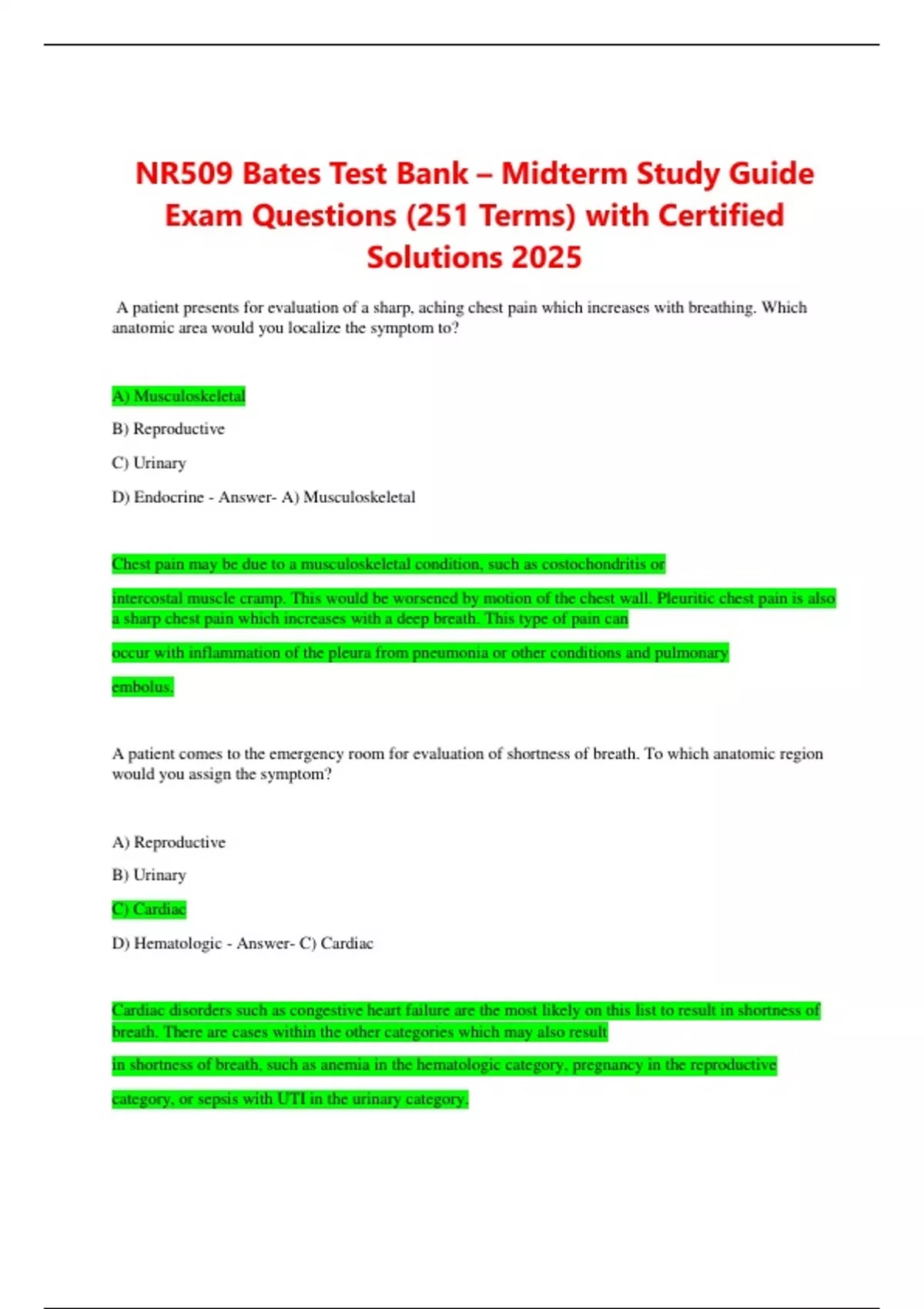 D) Hematologic - Answer- C) Cardiac