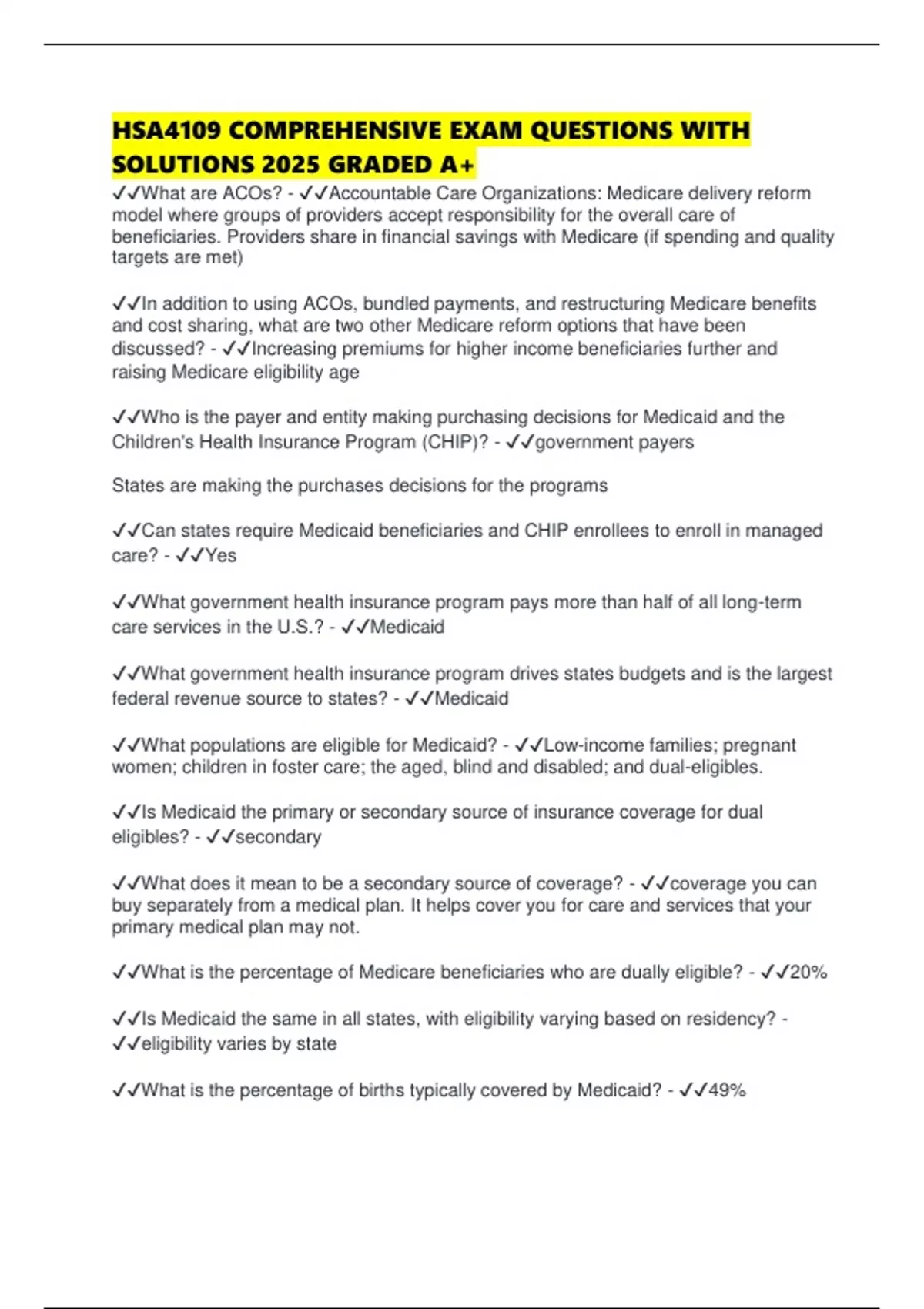 HSA4109 COMPREHENSIVE EXAM QUESTIONS WITH