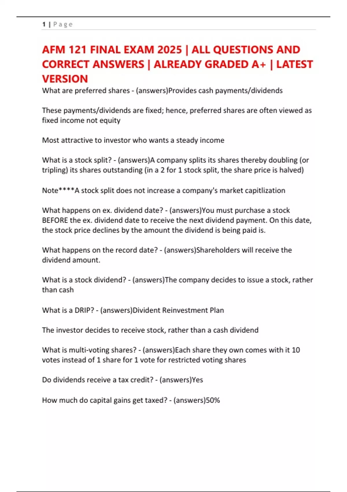 AFM 121 FINAL EXAM 2025 | ALL QUESTIONS AND