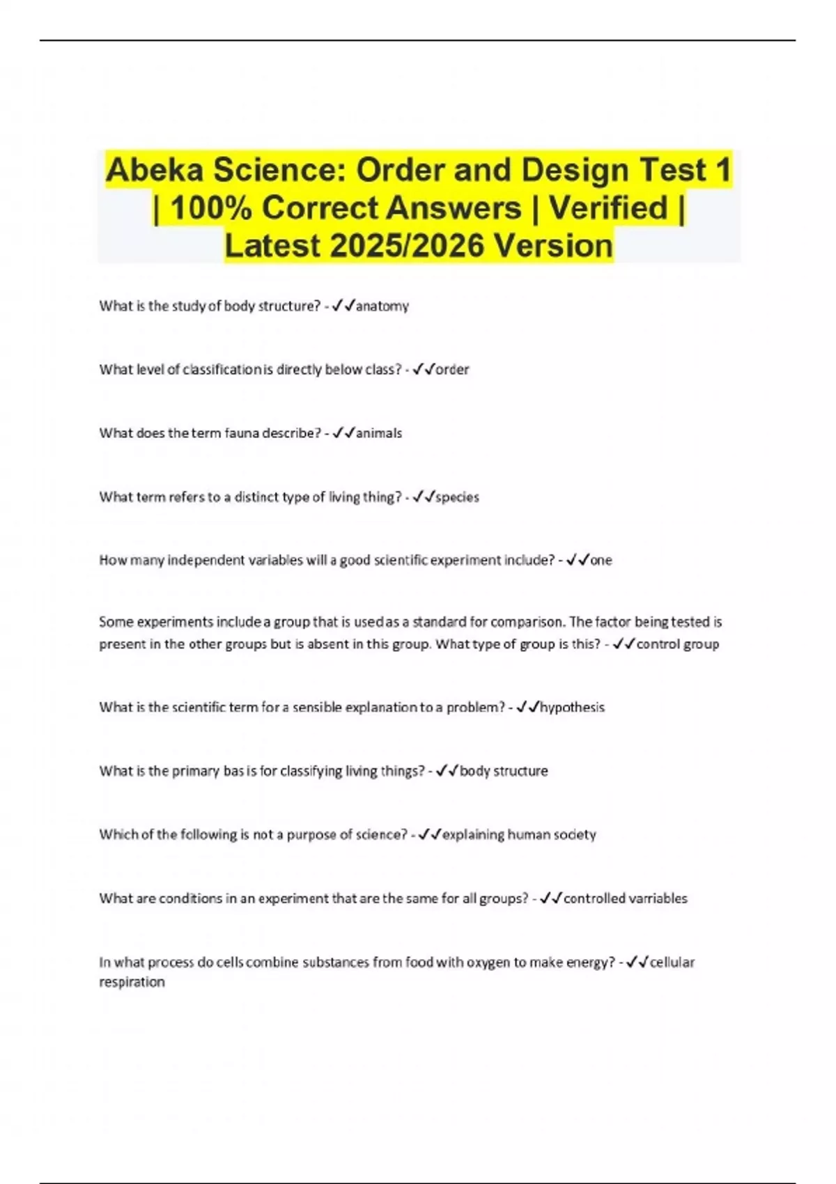 Abeka Science: Order and Design Test 1 | 100% Correct Answers | Verified | Latest 2025/2026 Version
