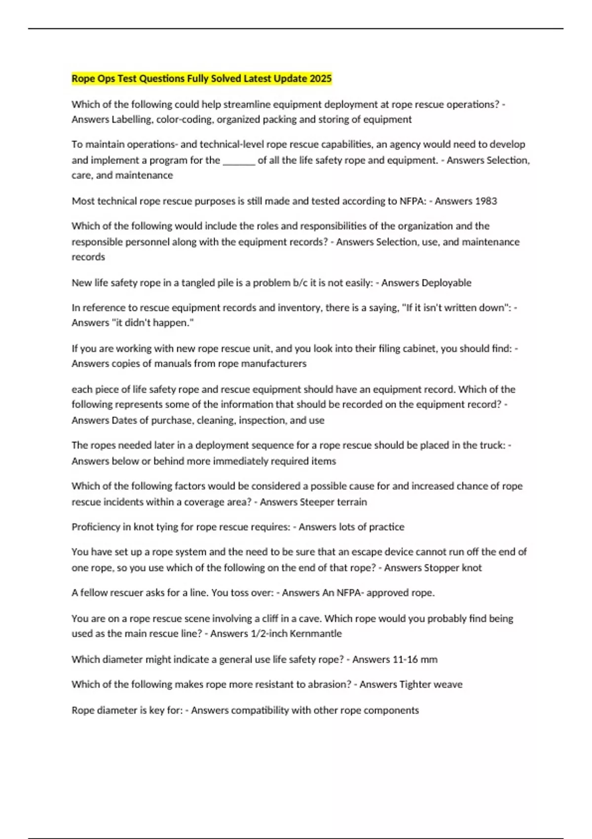 New life safety rope in a tangled pile is a problem b/c it is not easily: - Answers Deployable