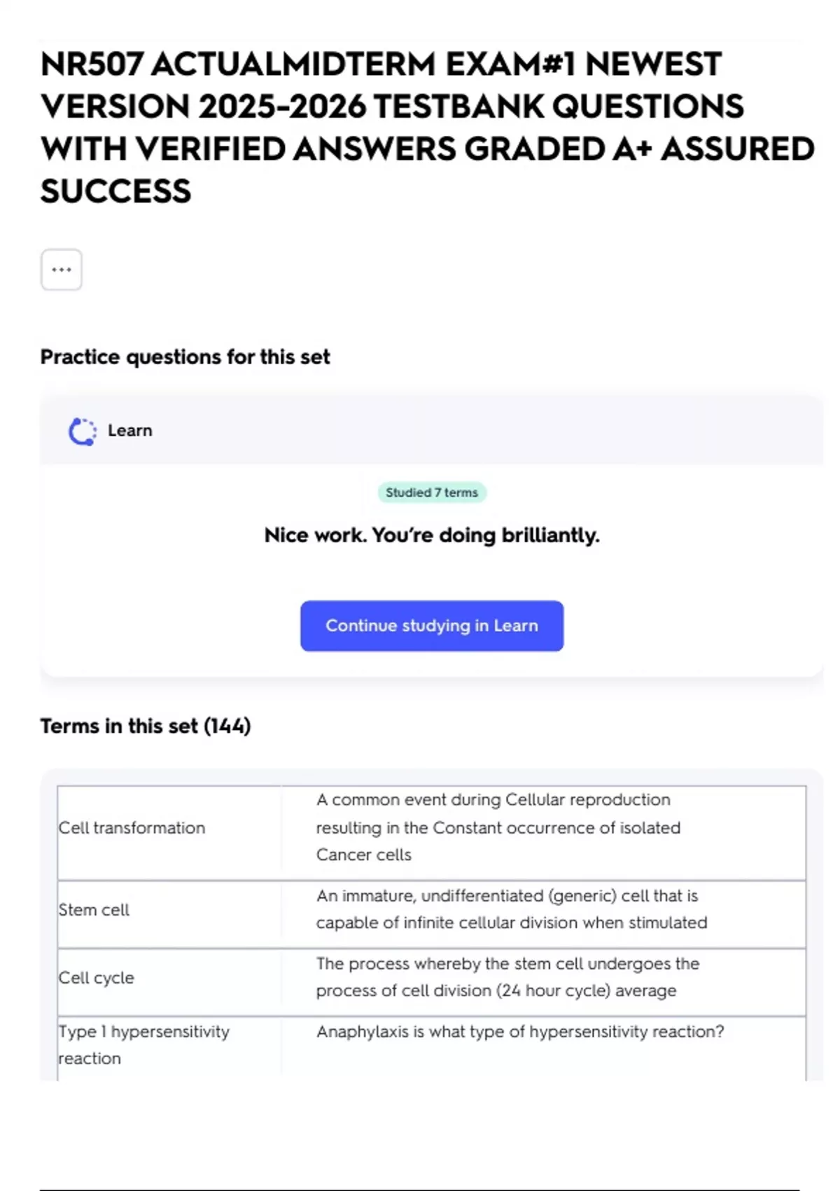 Continue studying in Learn