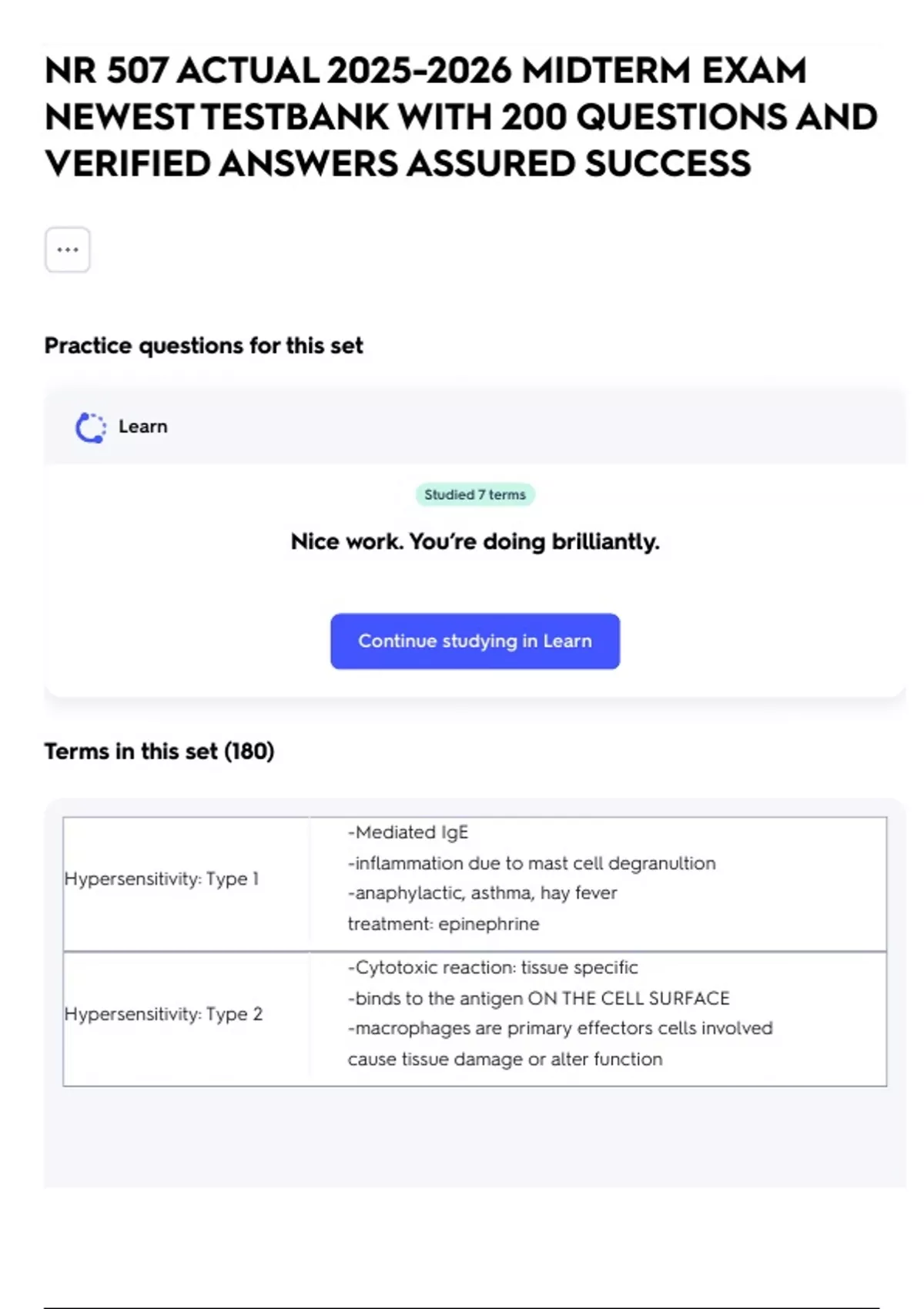 Continue studying in Learn