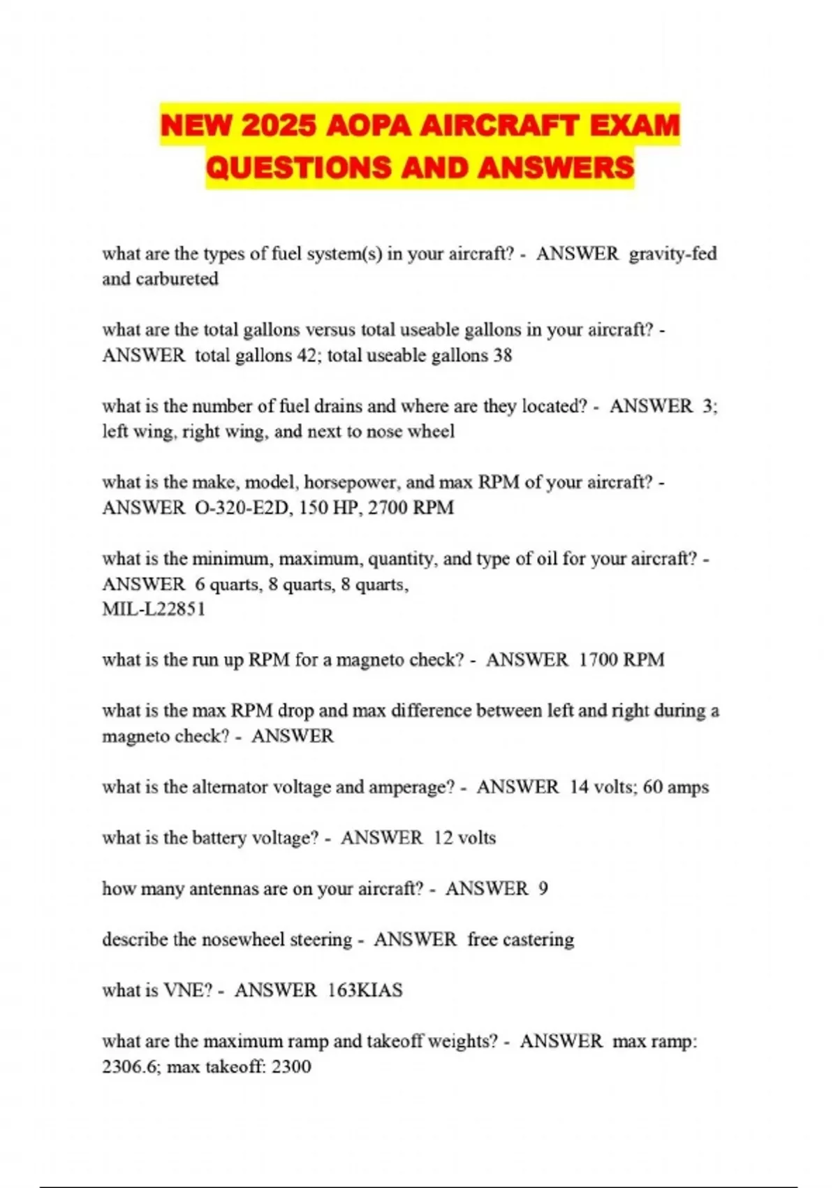 NEW 2025 AOPA AIRCRAFT EXAM QUESTIONS AND ANSWERS...
