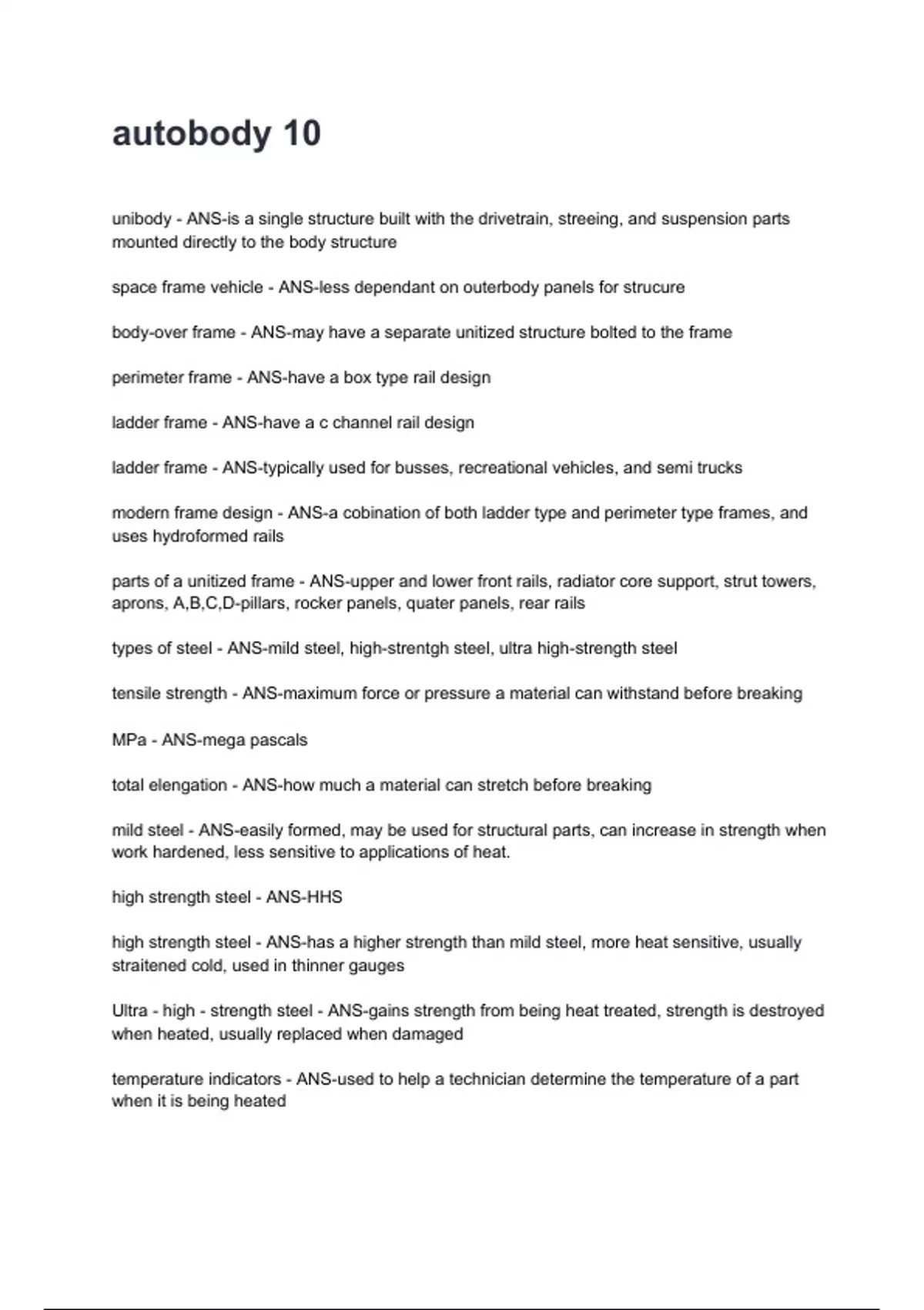 unibody - ANS-is a single structure built with the drivetrain, streeing, and suspension parts