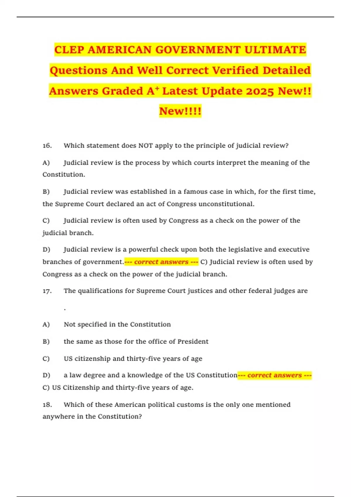 branches of government.--- correct answers --- C) Judicial review is often used by