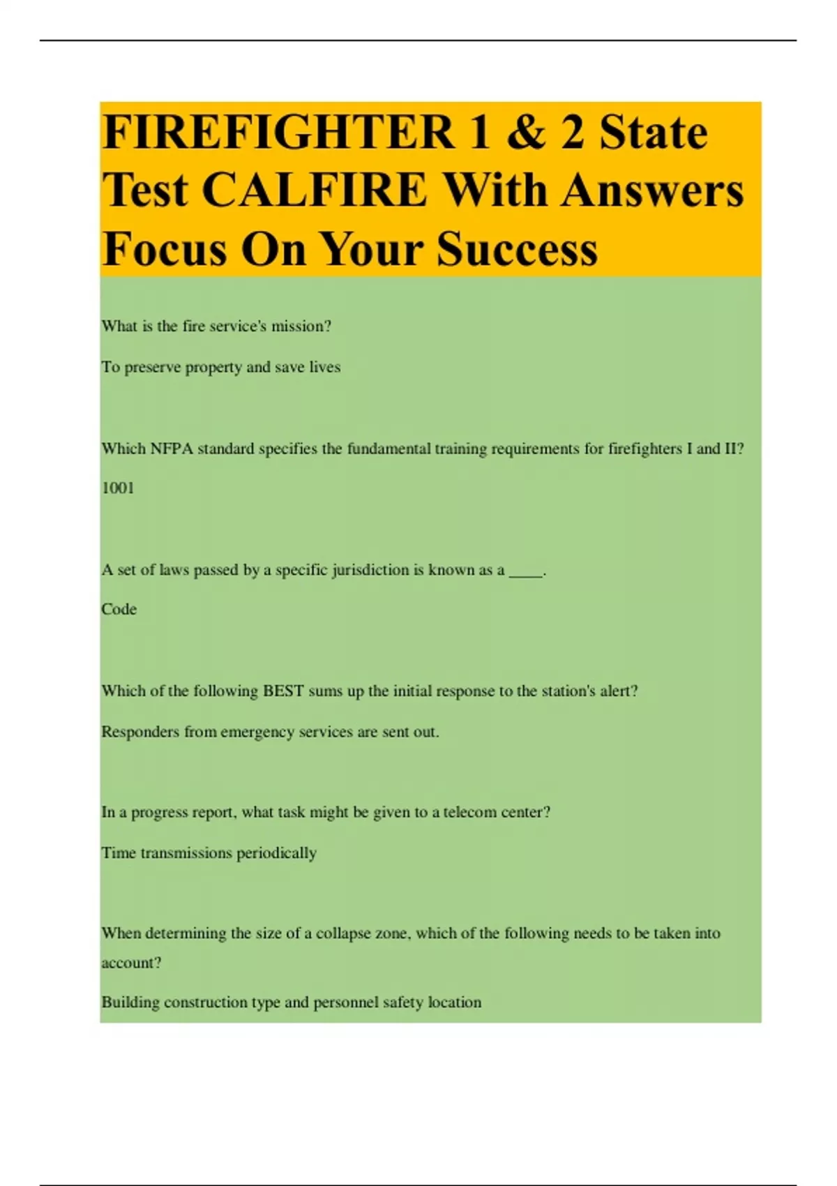 Test CALFIRE With Answers