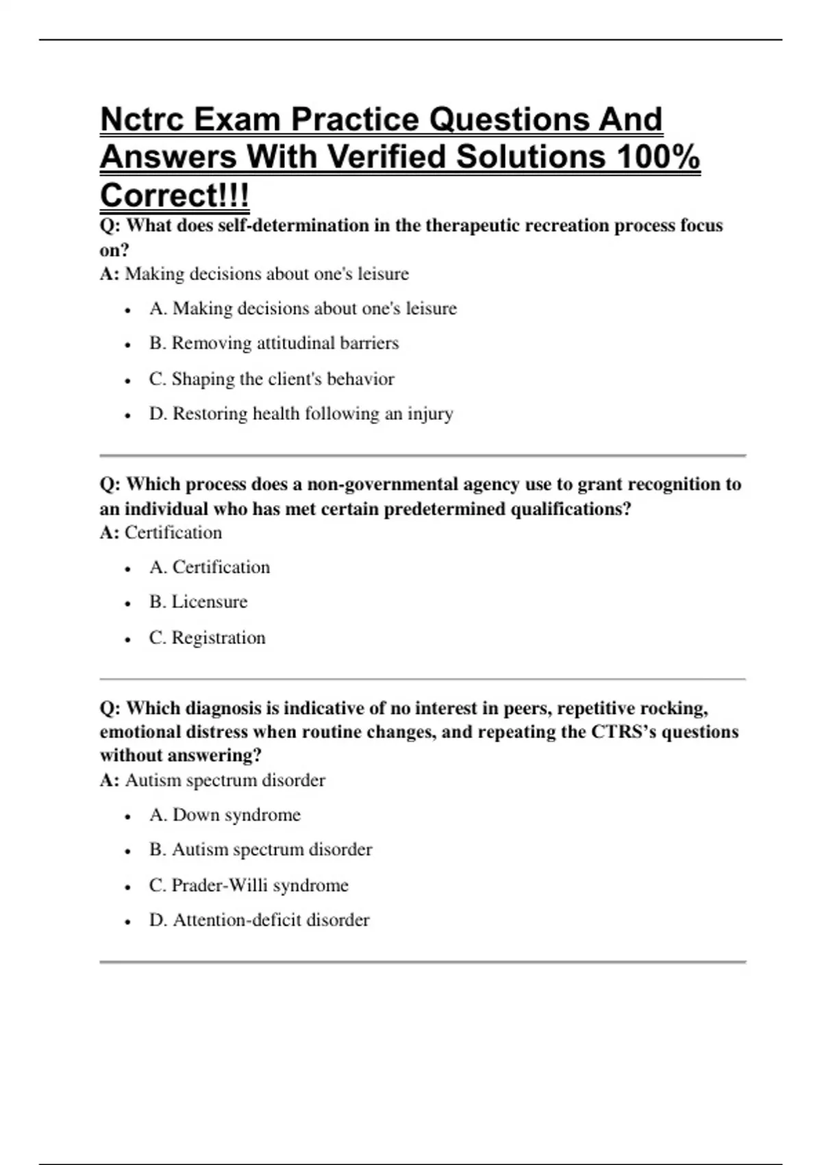 Q: Which diagnosis is indicative of no interest in peers, repetitive rocking,