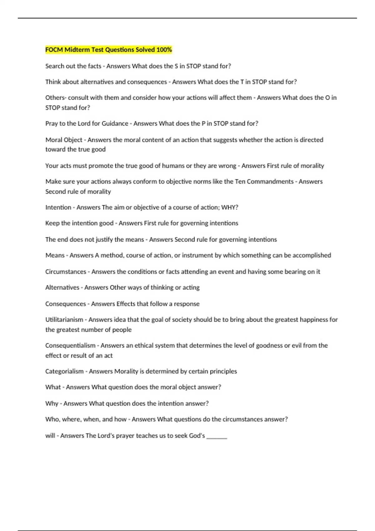 Make sure your actions always conform to objective norms like the Ten Commandments - Answers