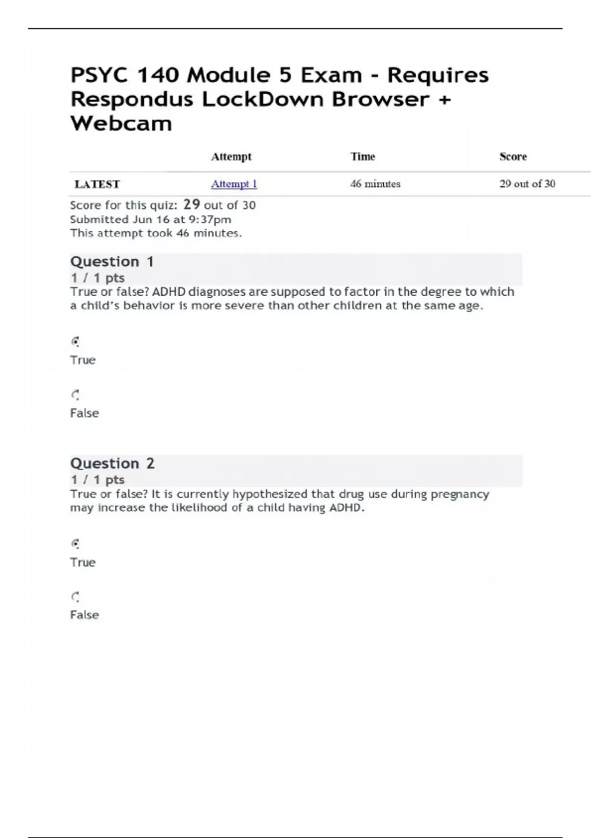 PSYC 140 Module 5 Exam - Requires Respondus LockDown Browser + Webcam