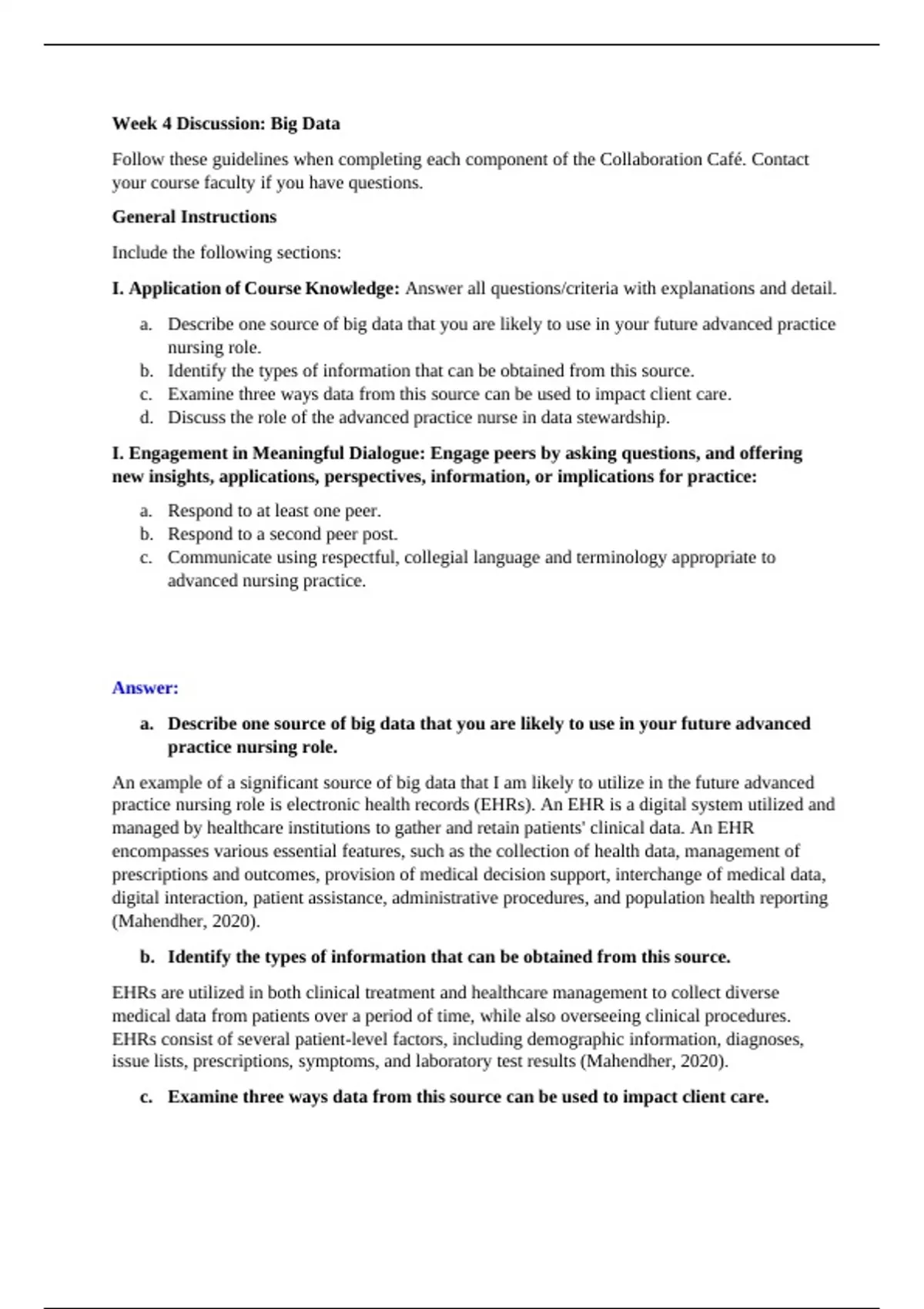 a. Describe one source of big data that you are likely to use in your future advanced practice