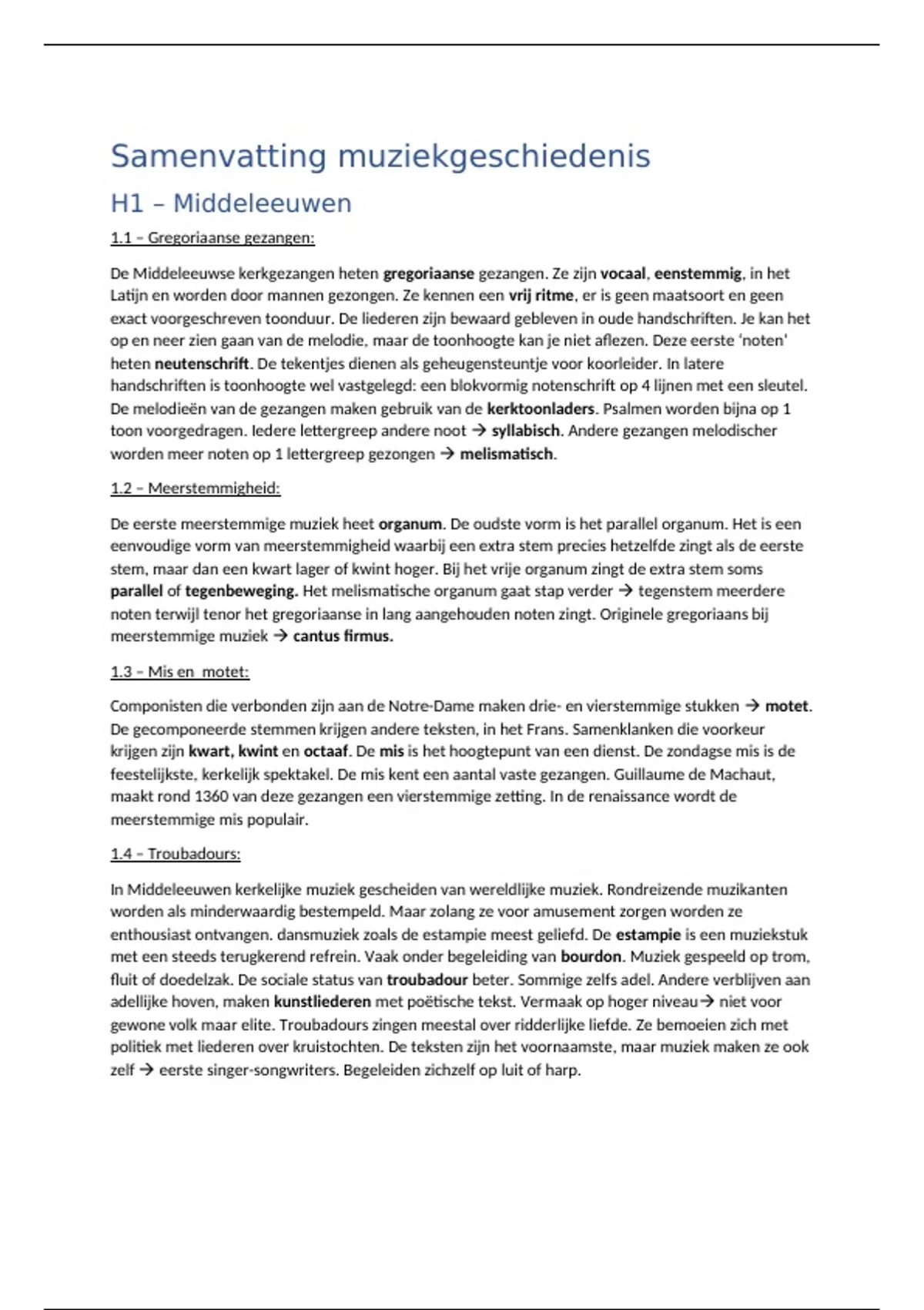 Samenvatting muziekgeschiedenis