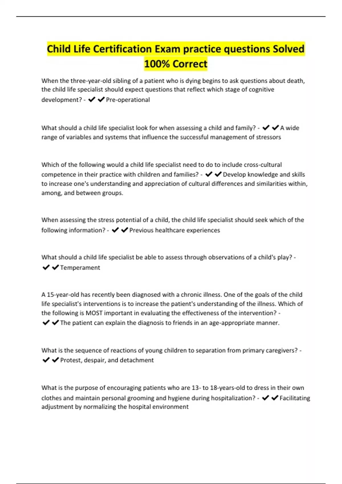 Child Life Certification Exam practice questions Solved