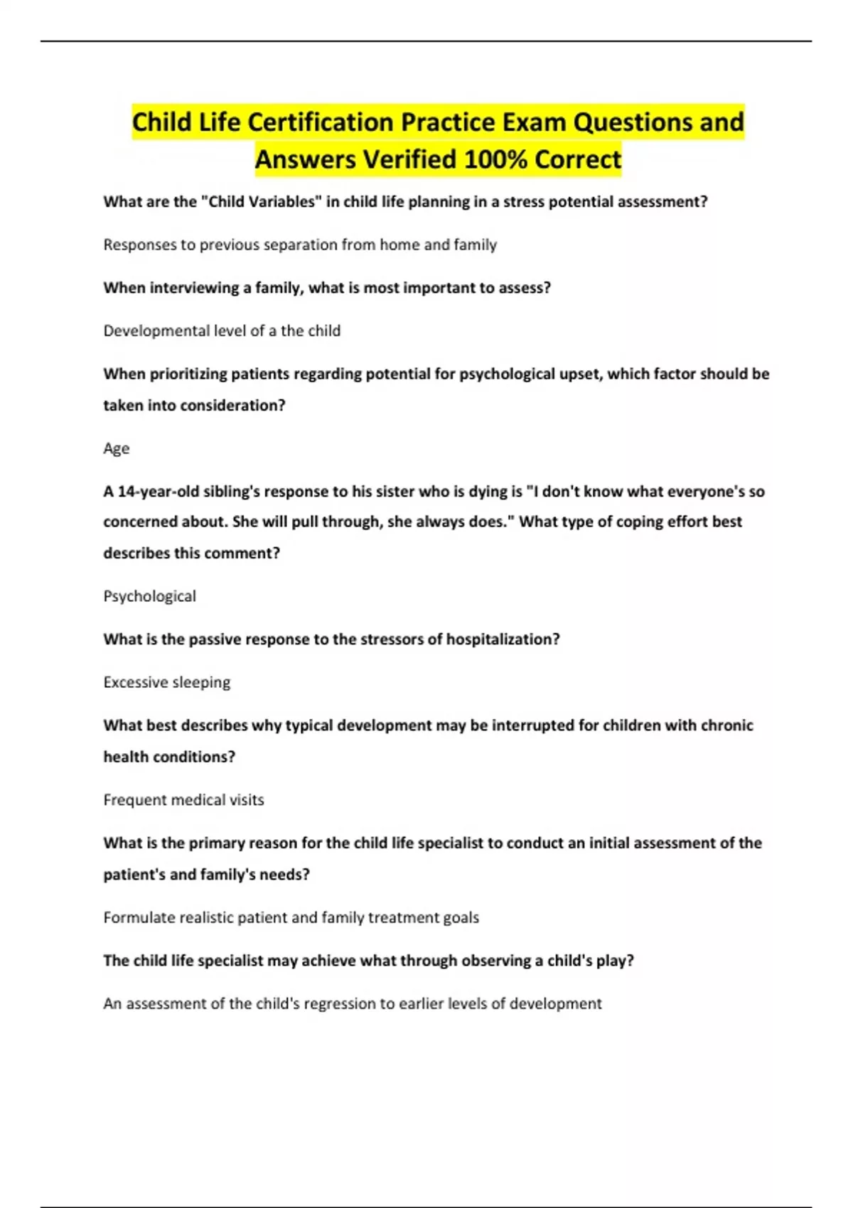 Child Life Certification Practice Exam Questions and