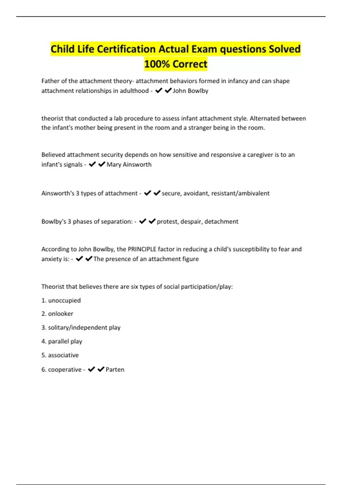 Child Life Certification Actual Exam questions Solved 100% Correct