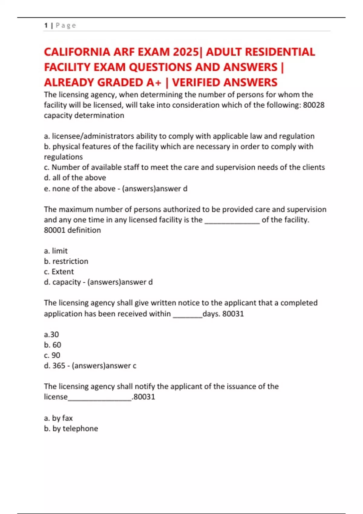 CALIFORNIA ARF EXAM 2025| ADULT RESIDENTIAL