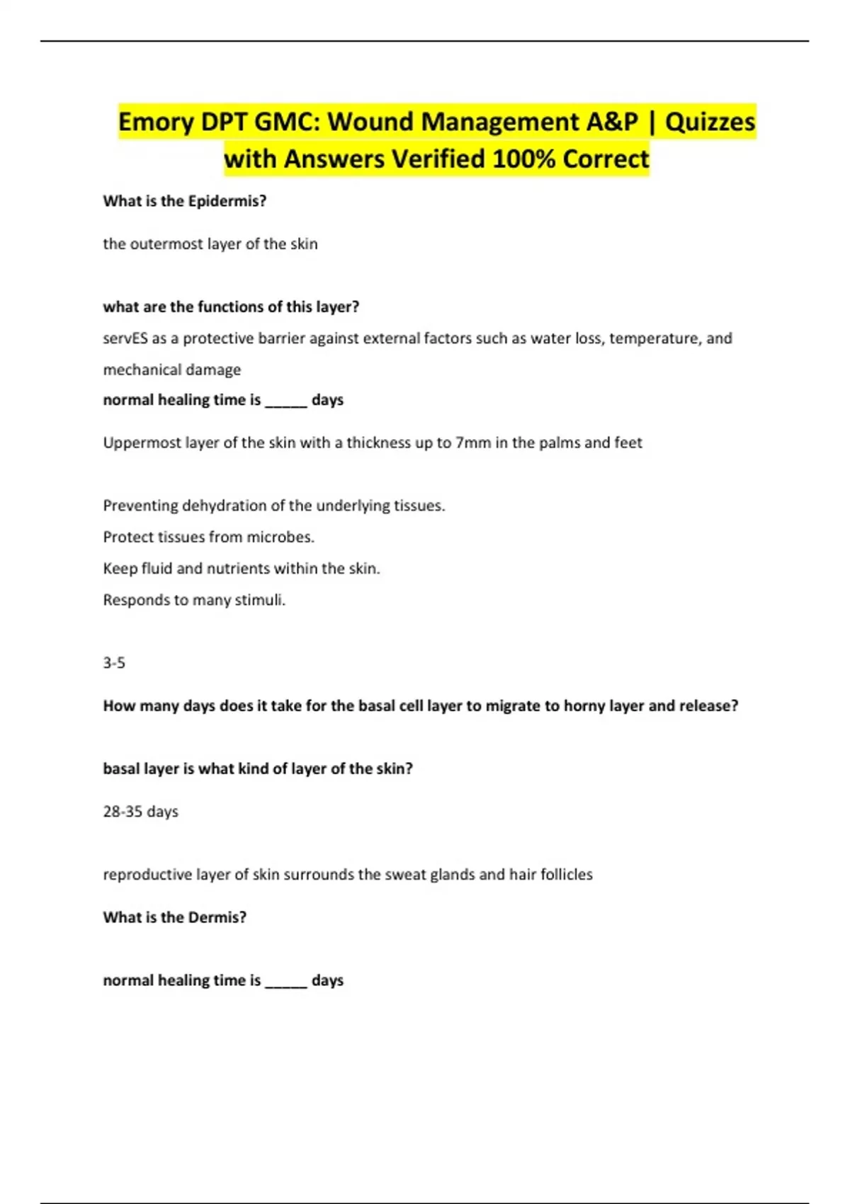 Emory DPT GMC: Wound Management A&P | Quizzes