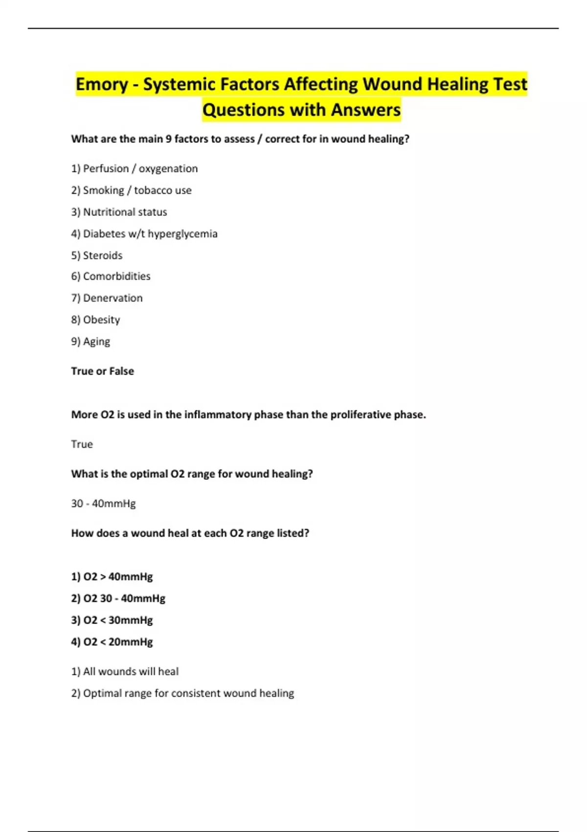 Emory - Systemic Factors Affecting Wound Healing Test