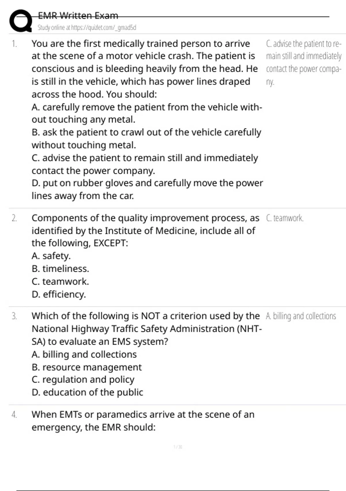 9. As an EMR, your MOST important consideration is: B) ensuring your own