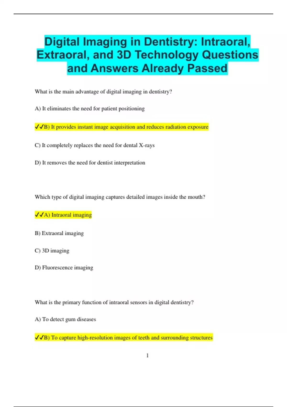 ✔✔A) Intraoral imaging