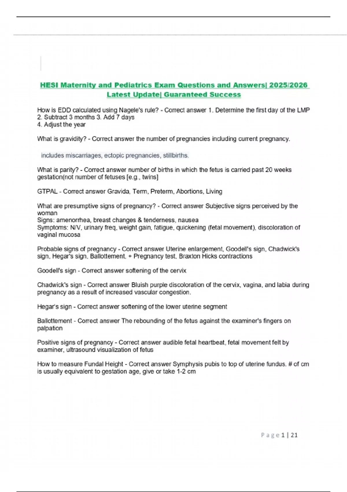 HESI Maternity and Pediatrics Exam Questions and Answers| 2025/2026 Latest Update| Guaranteed Success