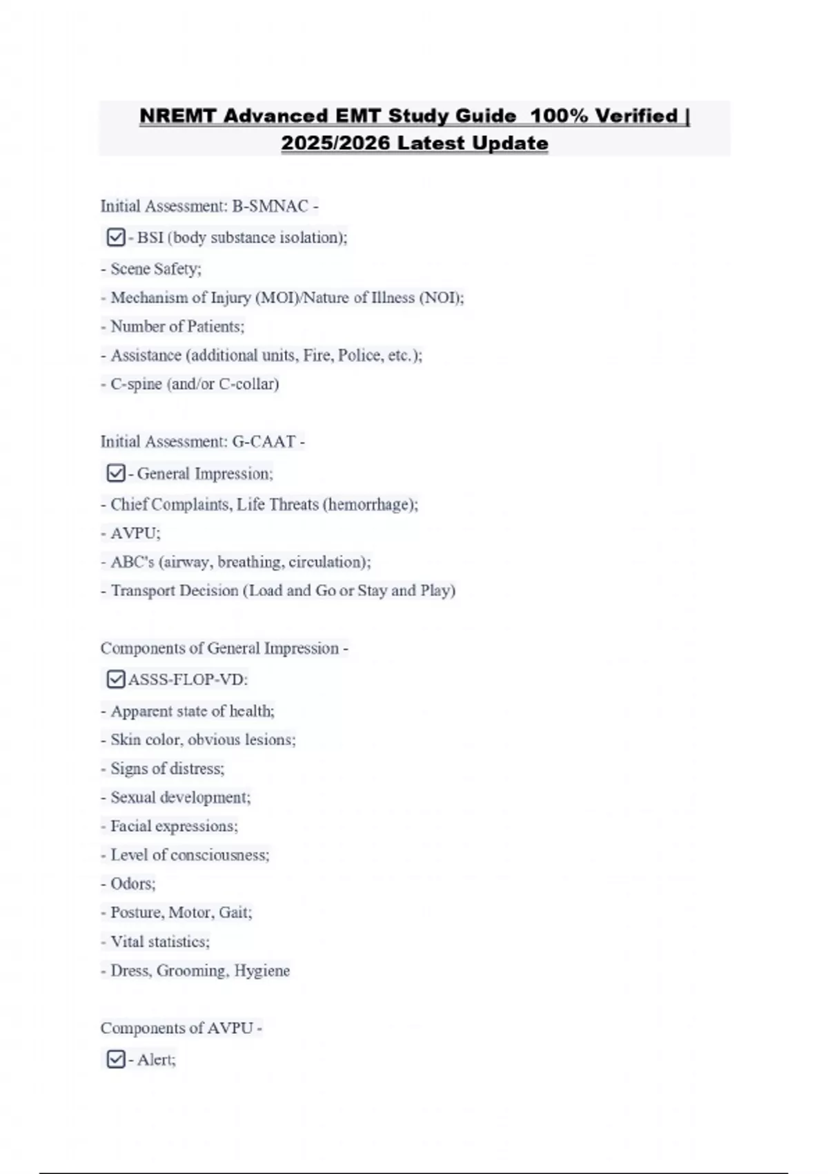 NREMT Advanced EMT Study Guide 100% Verified | 2025/2026 Latest Update