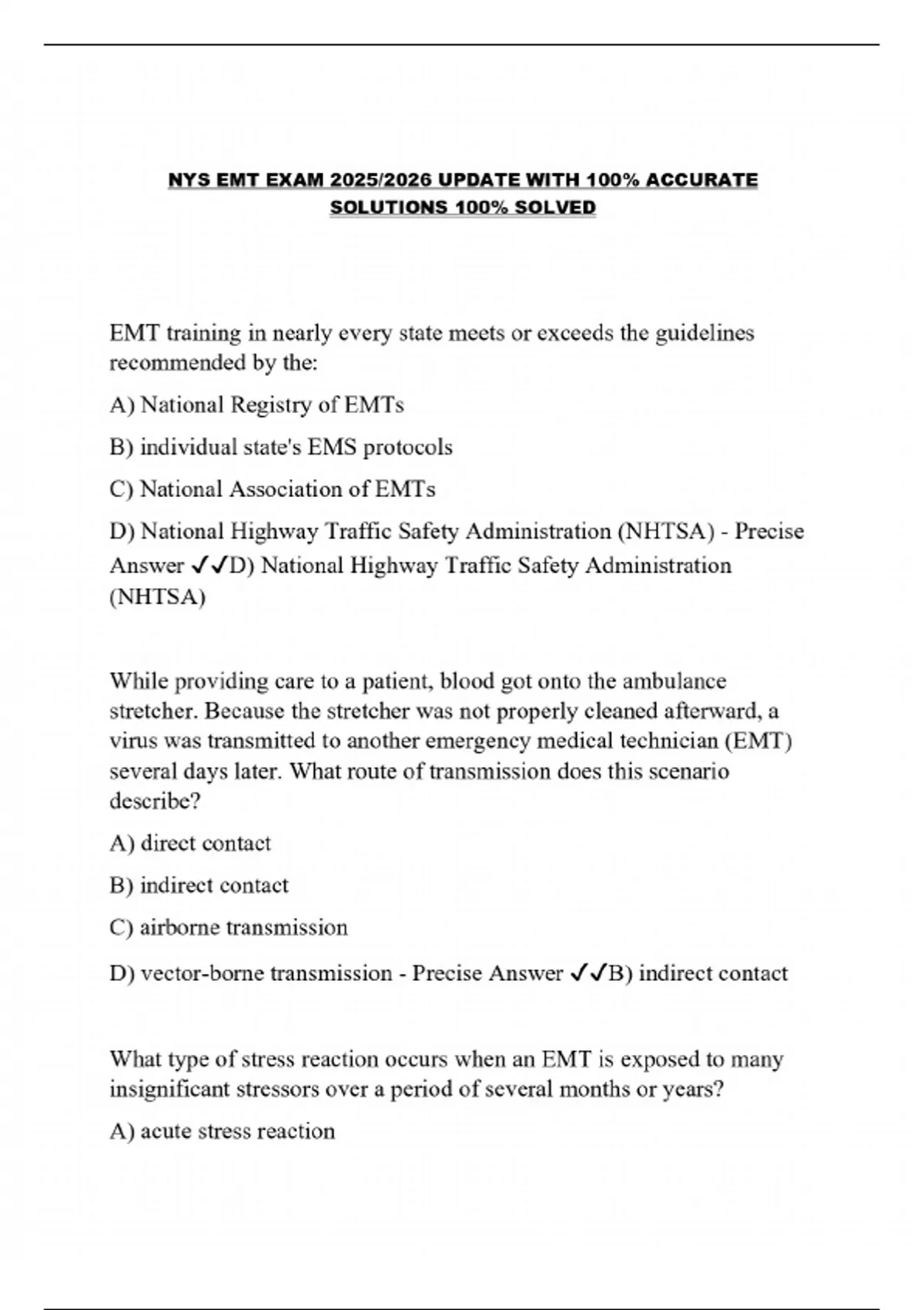 COMPLETE PACKAGE-::NYS EMT EXAMS WITH VERIFIED SOLUTIONS| LATEST UPDATE