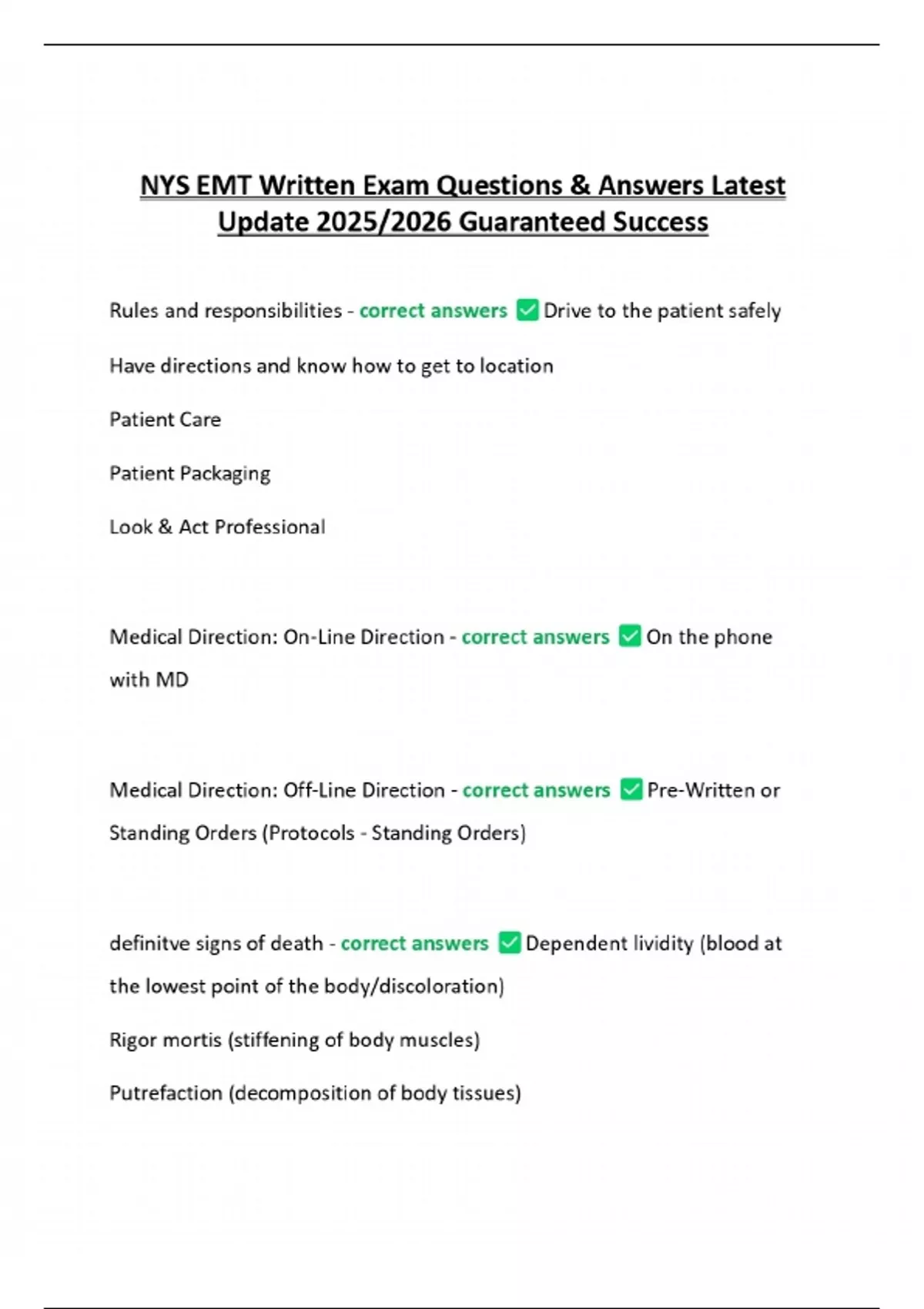 NYS EMT Written Exam Questions & Answers Latest Update 2025/2026 Guaranteed Success
