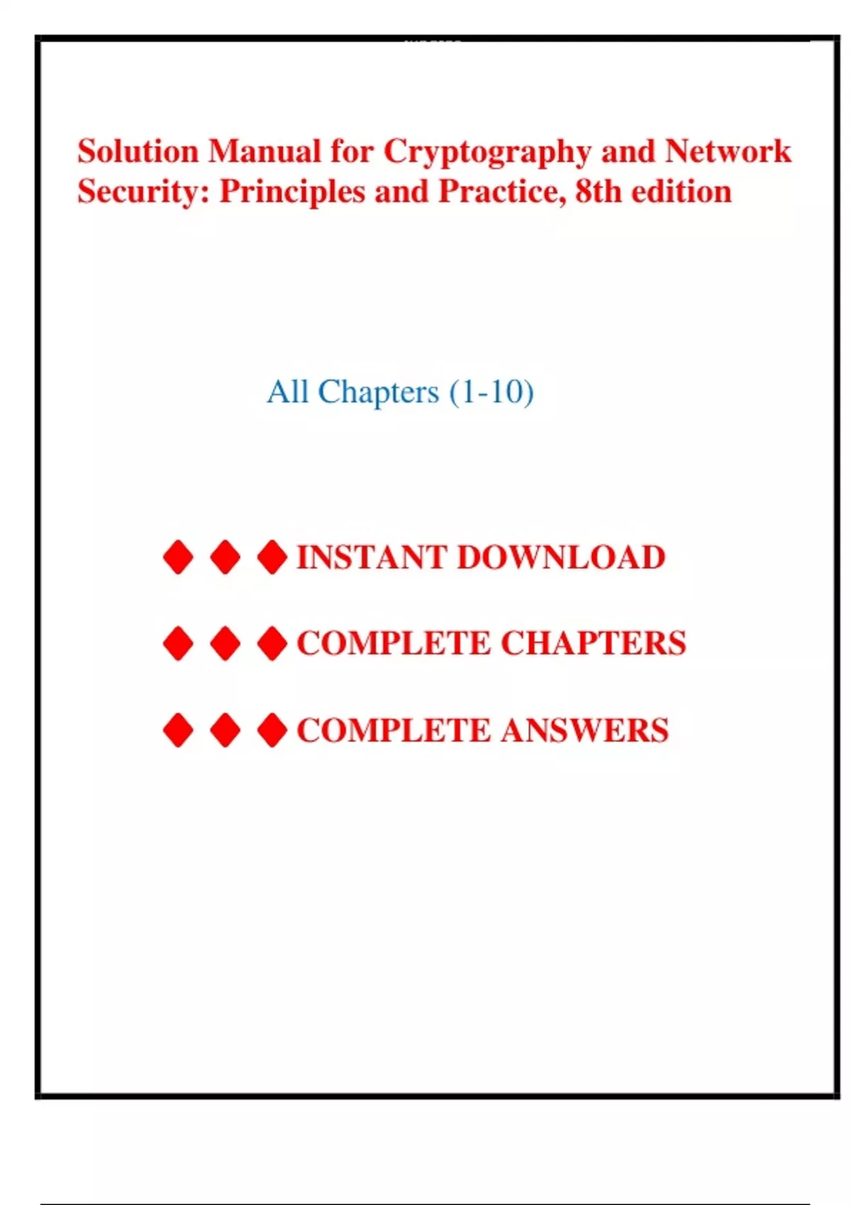 Solution Manual for Cryptography and Network Security: Principles and Practice, 8th edition by William Stallings, Chapter 1-10