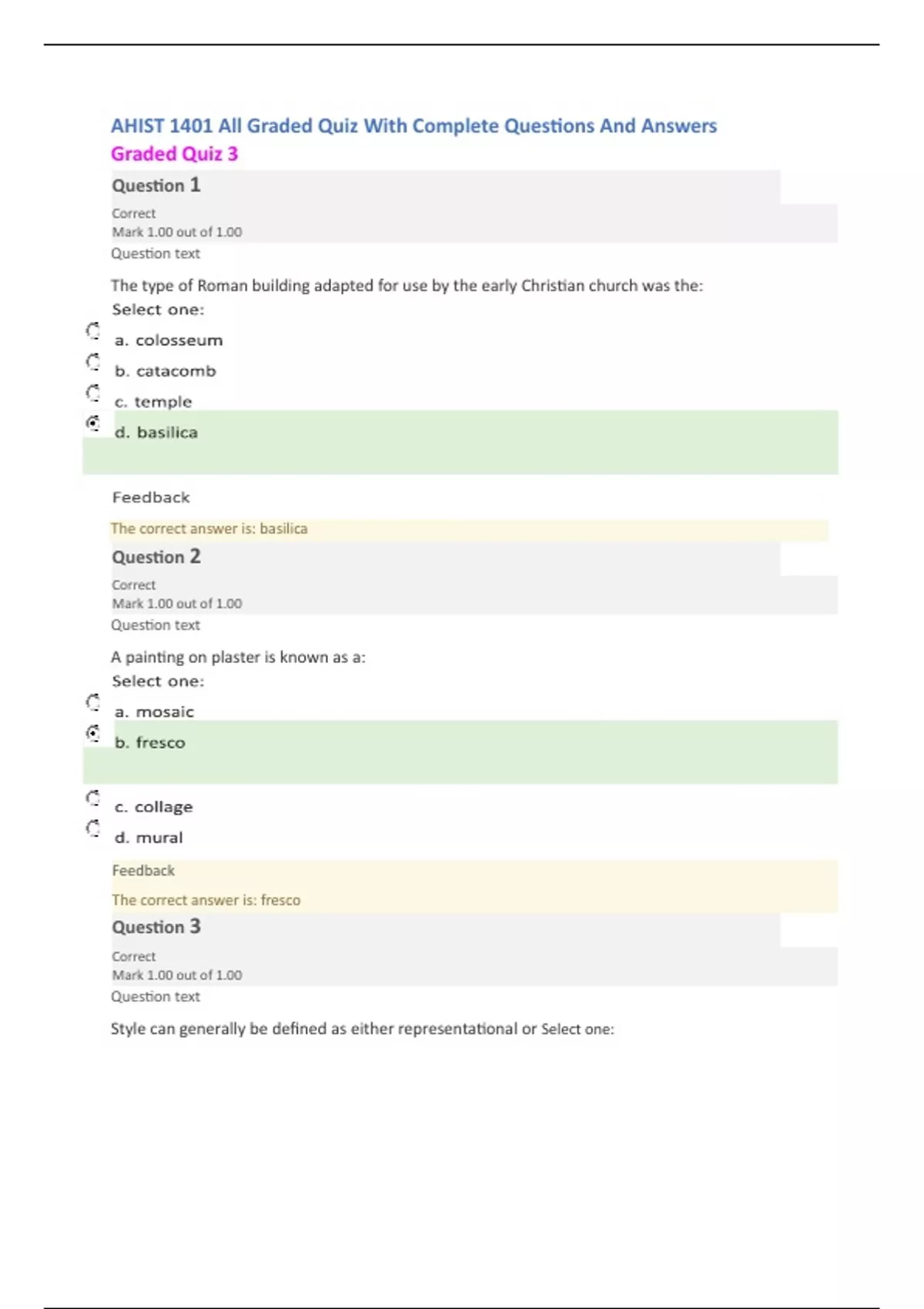 The correct answer is: fresco