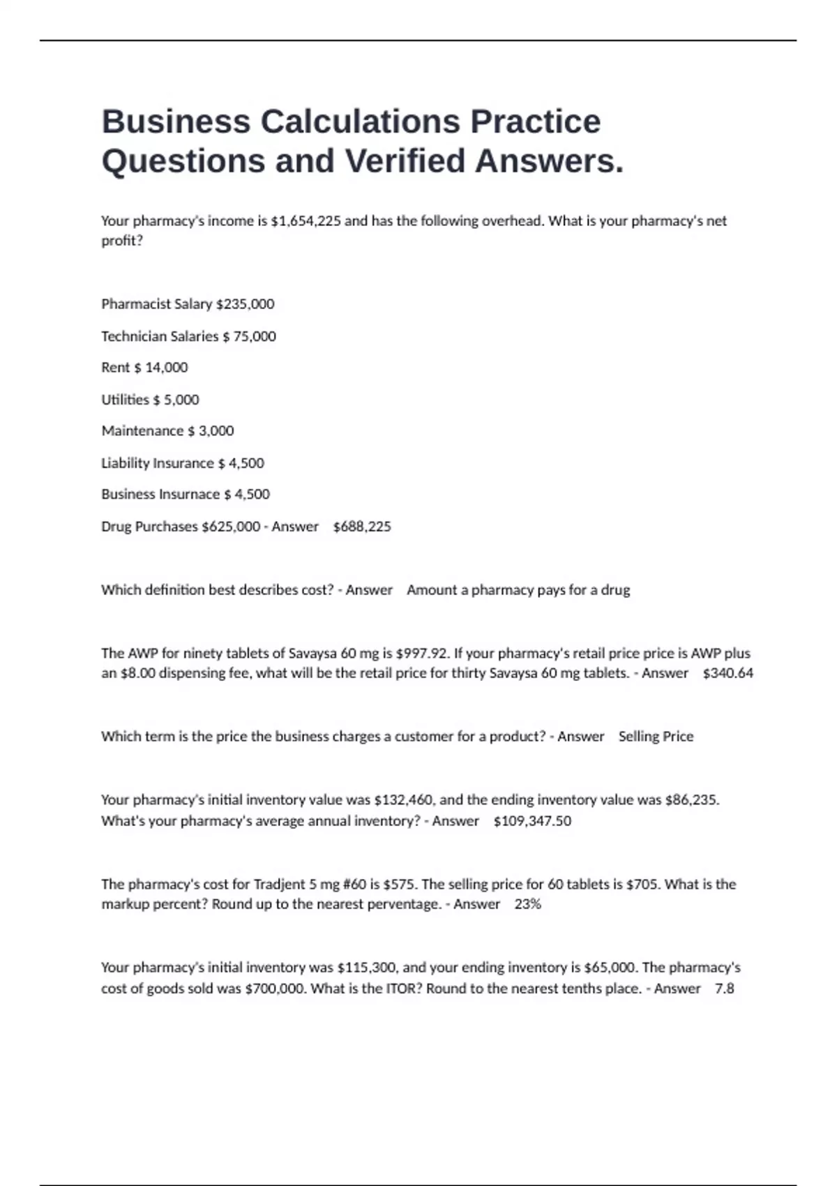 Questions and Verified Answers.