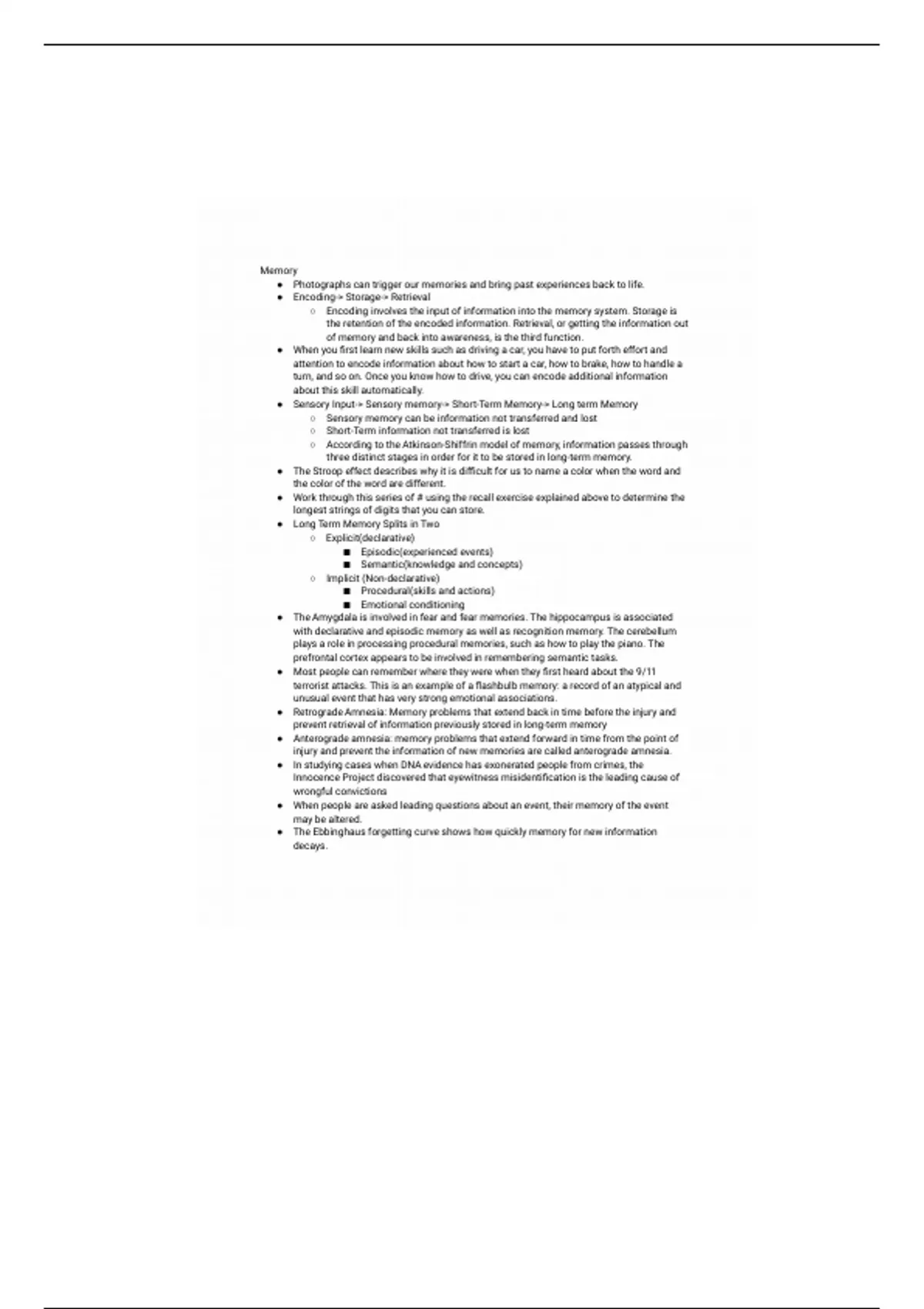 ● Sensory Input-> Sensory memory-> Short-Term Memory-> Long term Memory