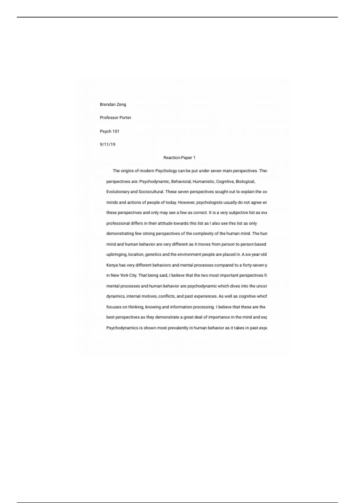 perspectives are: Psychodynamic, Behavioral, Humanistic, Cognitive, Biological,