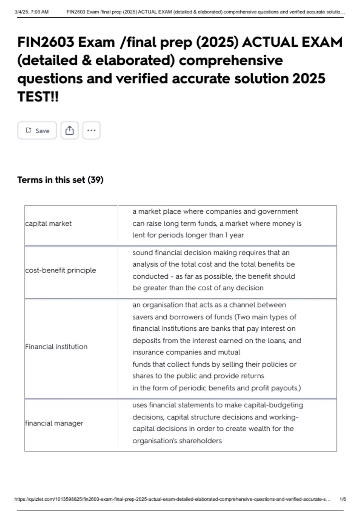 3/4/25, 7:09 AM FIN2603 Exam /final prep (2025) ACTUAL EXAM (detailed & elaborated) comprehensive questions and verified accurate solutio…