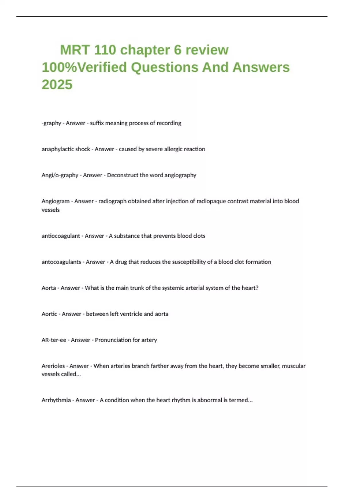 Angiogram - Answer - radiograph obtained after injection of radiopaque contrast material into blood