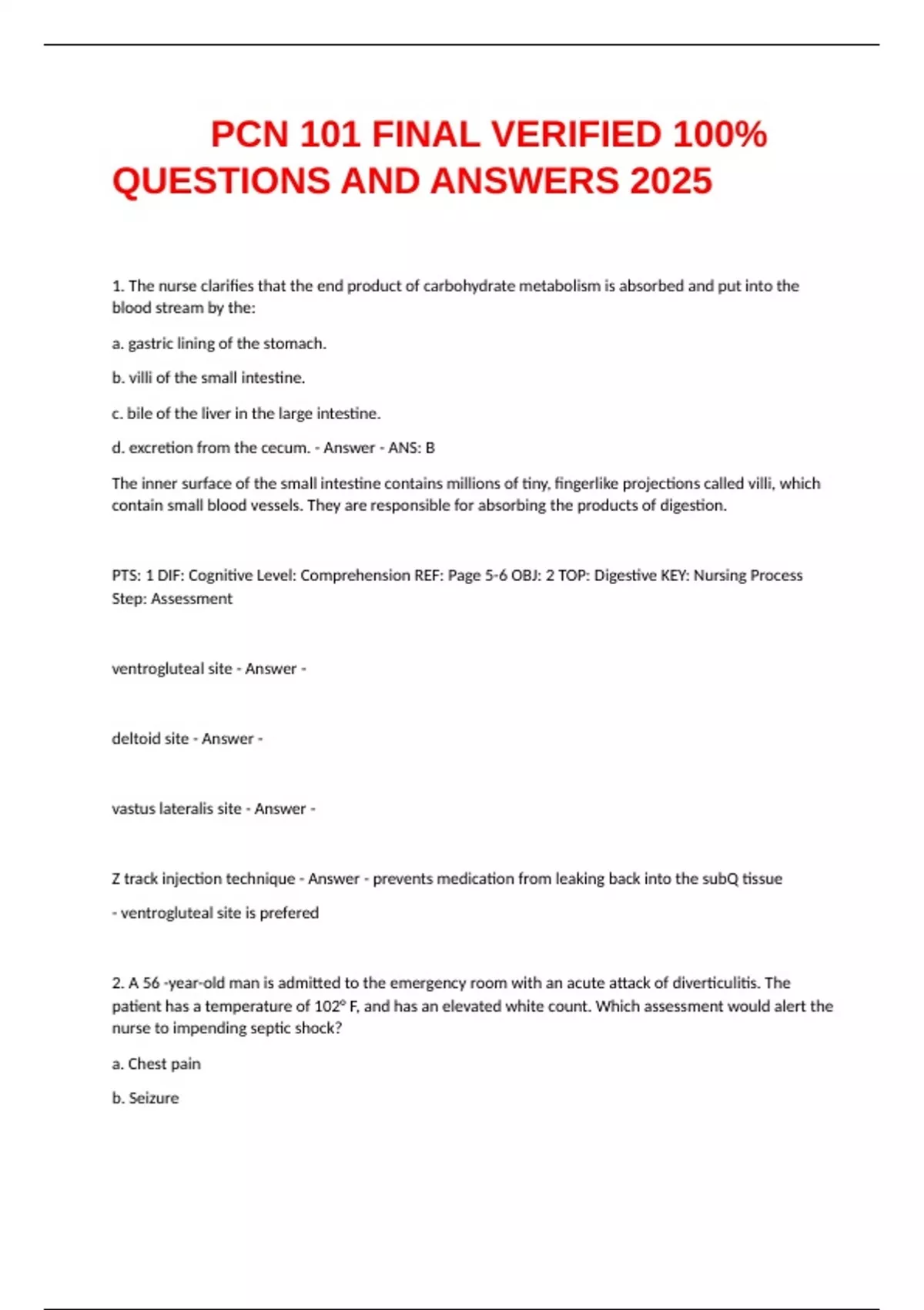 PCN 101 FINAL VERIFIED 100% QUESTIONS AND ANSWERS 2025