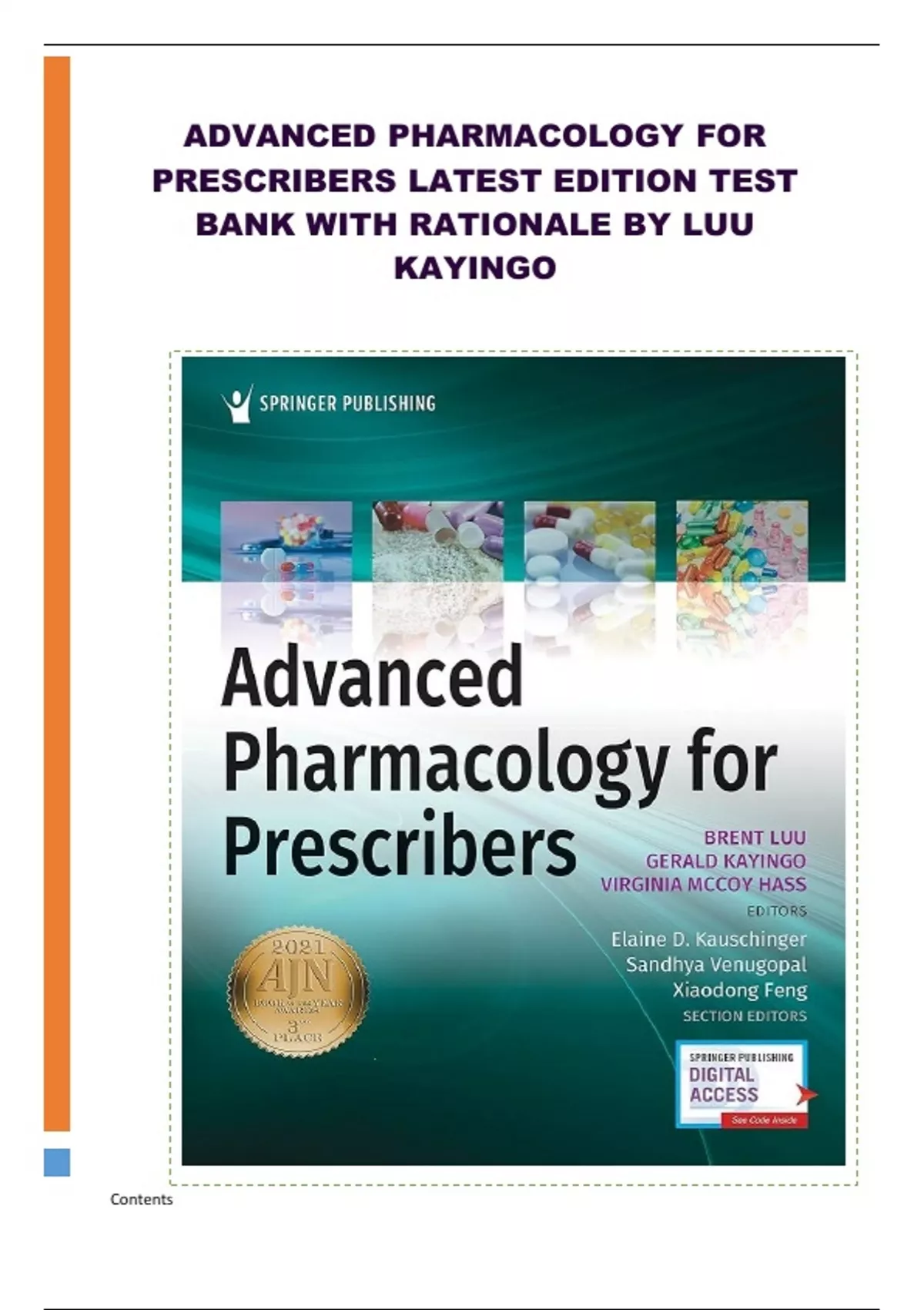 Comprehensive Test Bank for *Advanced Pharmacology for Prescribers* (1st Edition) by Luu Kayingo – Includes Detailed Rationales.
