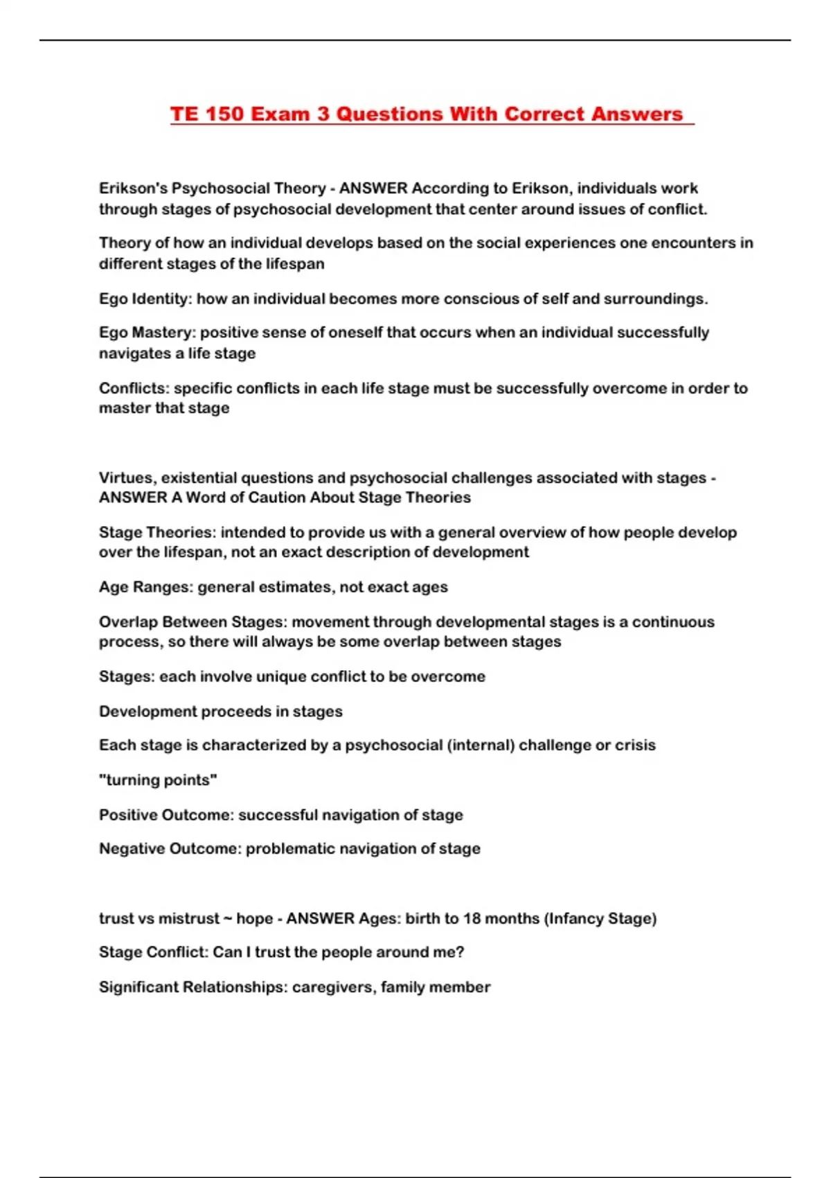 TE 150 Exam 3 Questions With Correct Answers