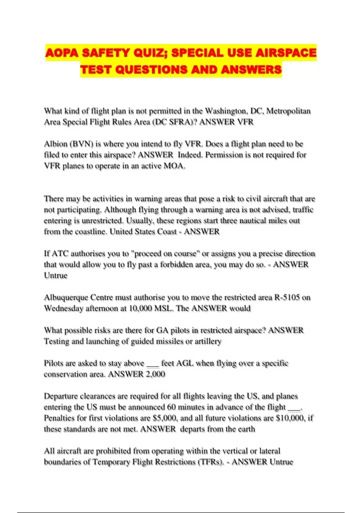AOPA SAFETY QUIZ; SPECIAL USE AIRSPACE