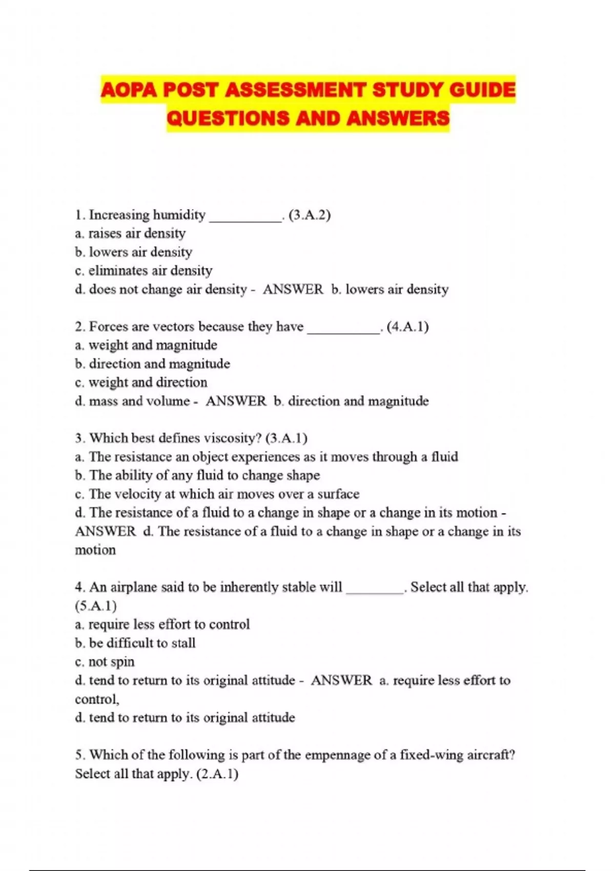 AOPA POST ASSESSMENT STUDY GUIDE QUESTIONS AND ANSWERS....