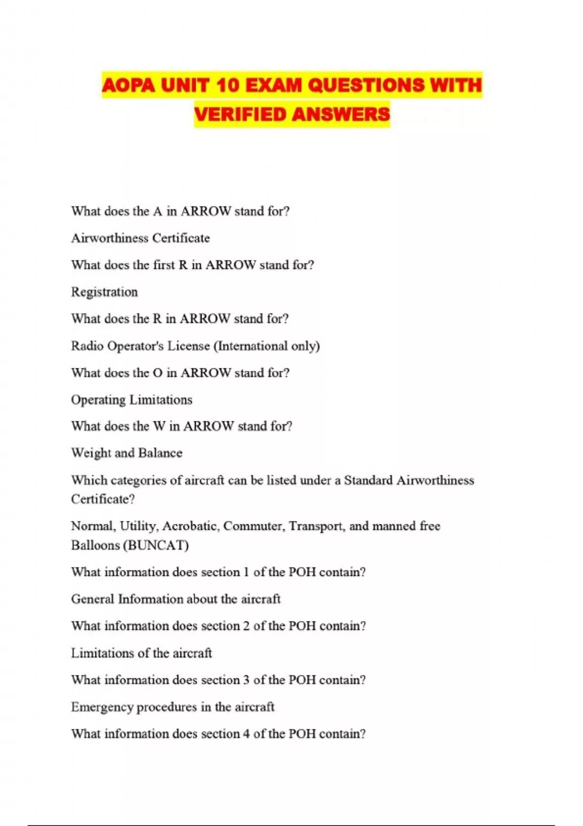 AOPA UNIT 10 EXAM QUESTIONS WITH VERIFIED ANSWERS...