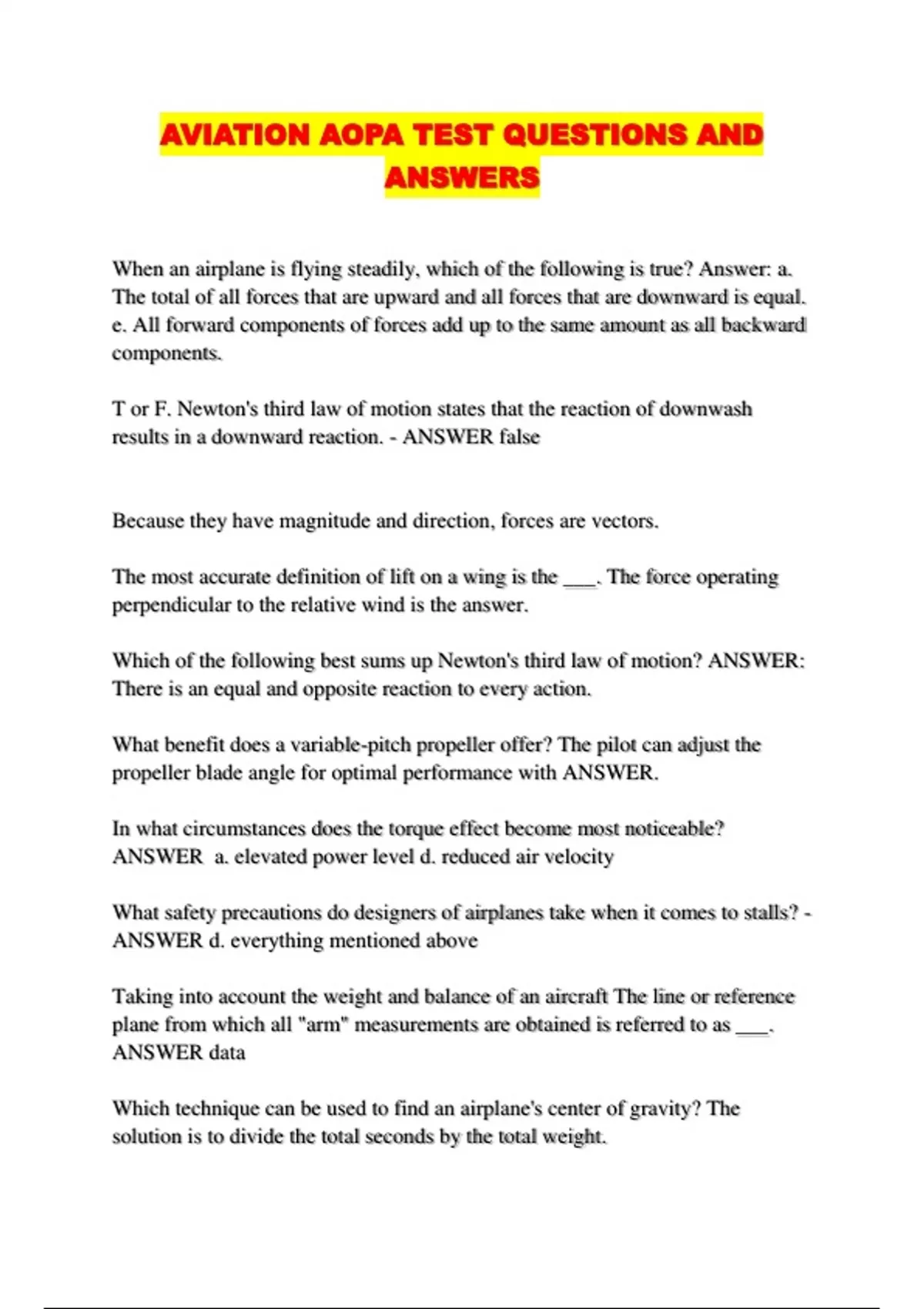 When an airplane is flying steadily, which of the following is true? Answer: a.