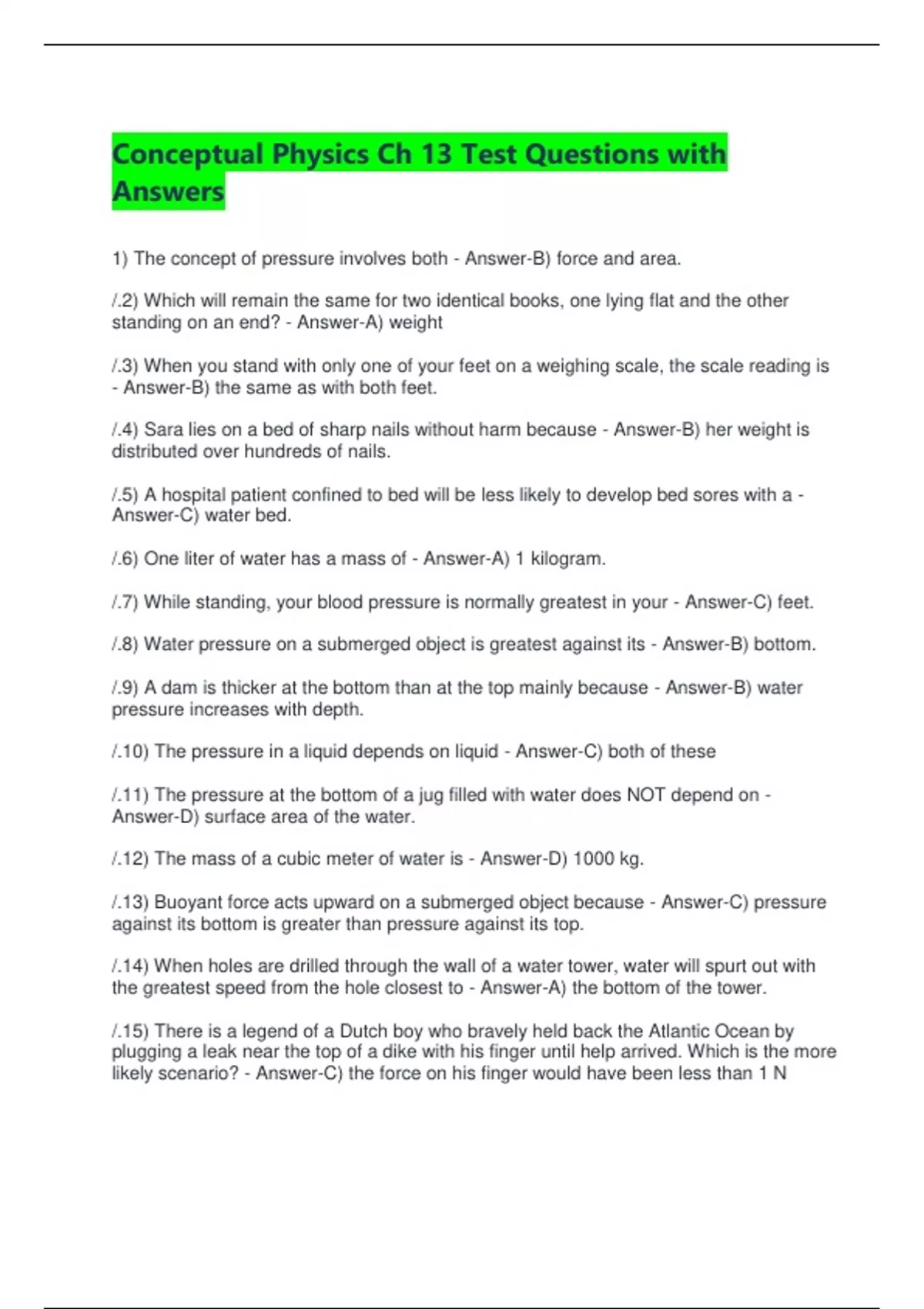 /.10) The pressure in a liquid depends on liquid - Answer-C) both of these