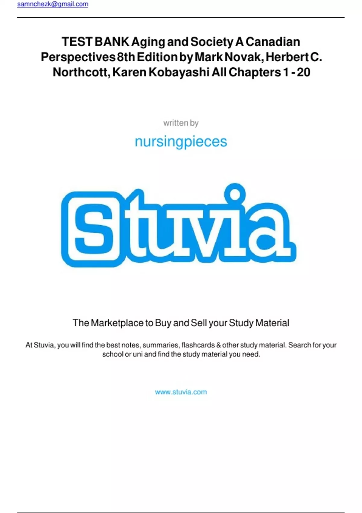 TEST BANK Aging and Society A Canadian Perspectives 8th Edition by Mark Novak, Herbert C. Northcott, Karen Kobayashi All Chapters 1 - 20 | Complete Guide.