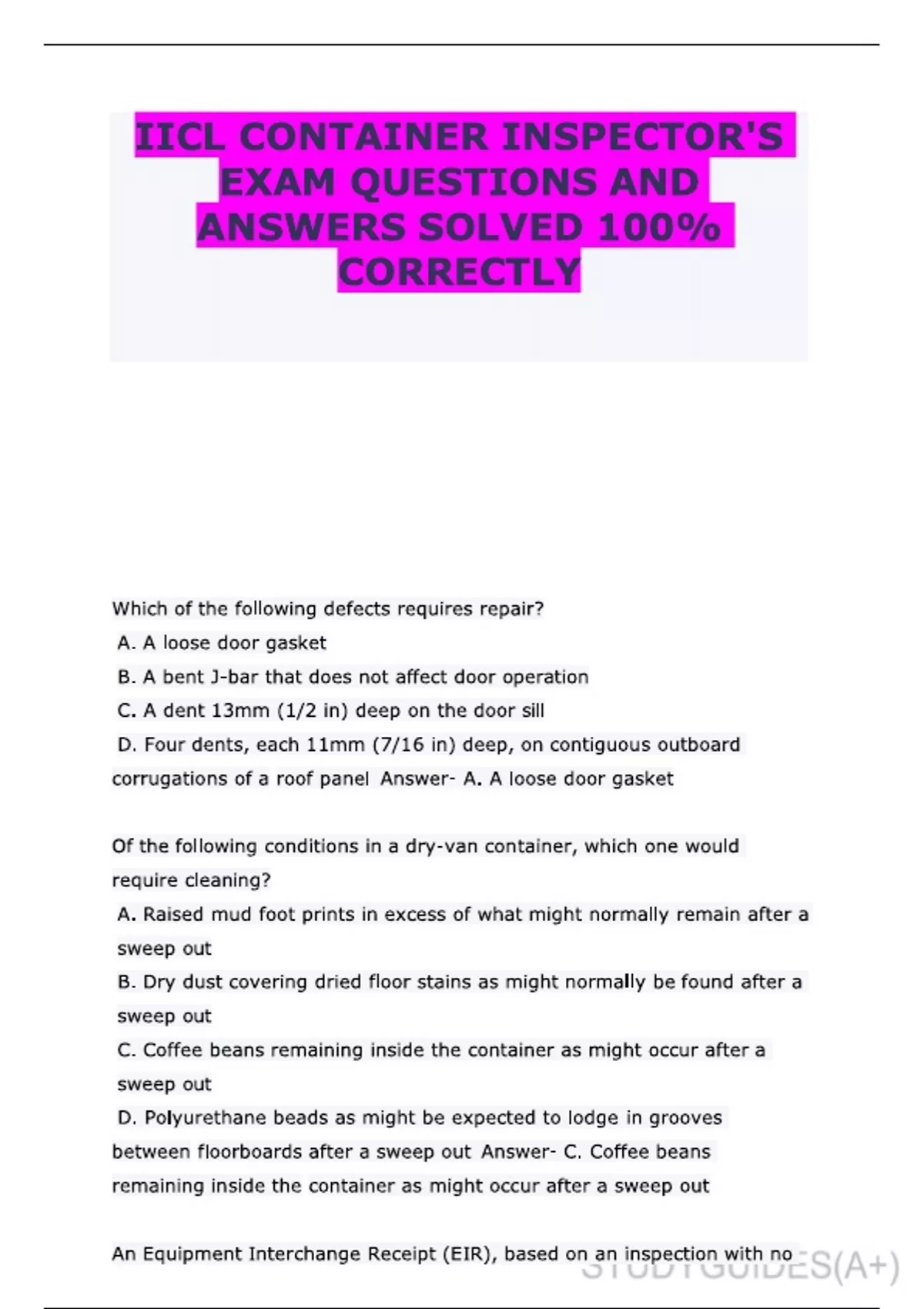 IICL CONTAINER INSPECTOR'S EXAM QUESTIONS AND ANSWERS SOLVED 100% CORRECTLY IICL container inspector exam IICL exam questions container inspection exam answers IICL exam answers correct IICL exam solutions container inspector test questions IICL certification questions IICL exam preparation IICL exam study guide container inspection test prep IICL questions and answers 100% correct IICL answers IICL test practice IICL answer key solved IICL test questions container inspector certification container inspection exam guide IICL mock test IICL container course container inspector practice exam IICL container certification container inspection test help IICL practice questions
