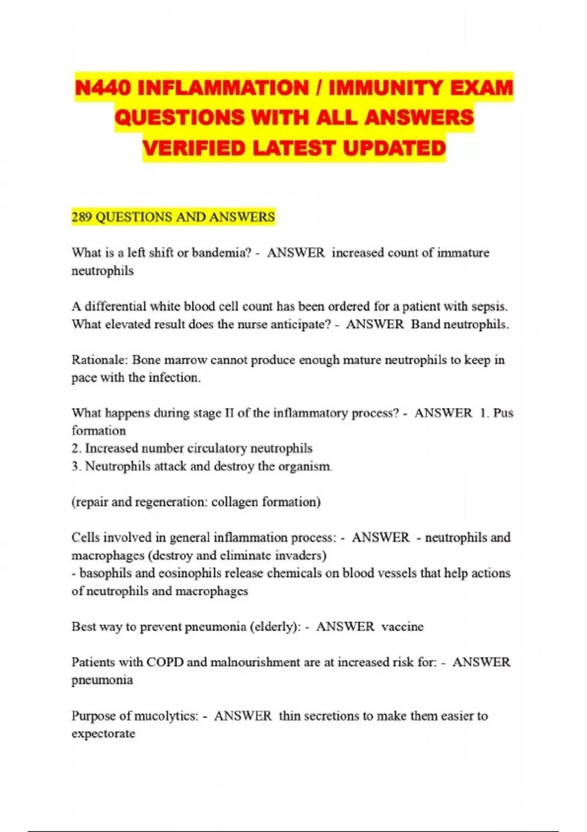 N440 INFLAMMATION - IMMUNITY EXAM QUESTIONS WITH ALL ANSWERS VERIFIED LATEST UPDATED