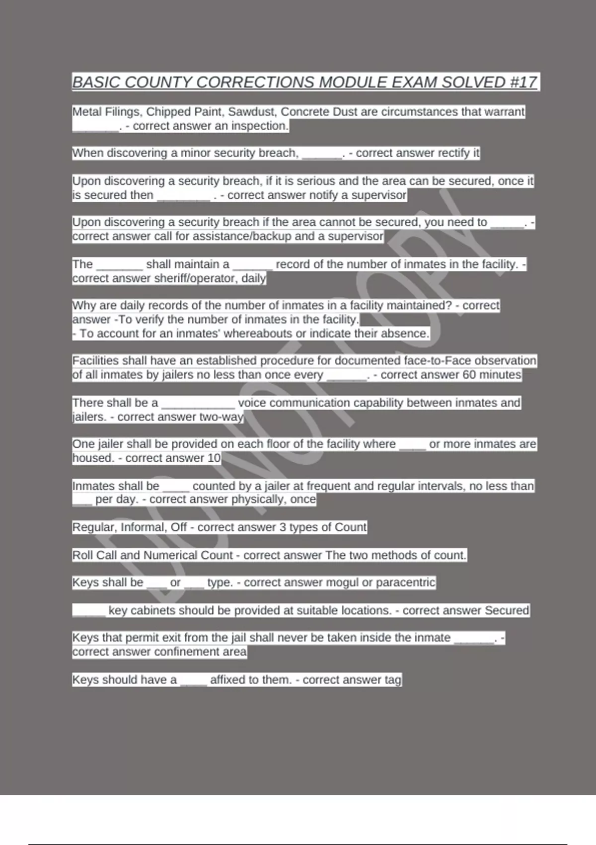 answer -To verify the number of inmates in the facility.